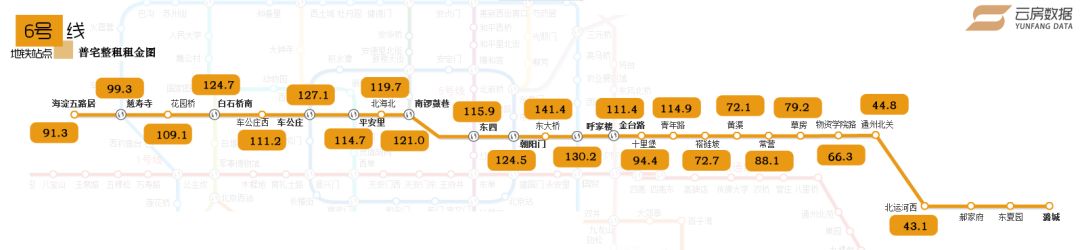 租金最低地铁站:北运河西(43.1元/㎡/月)