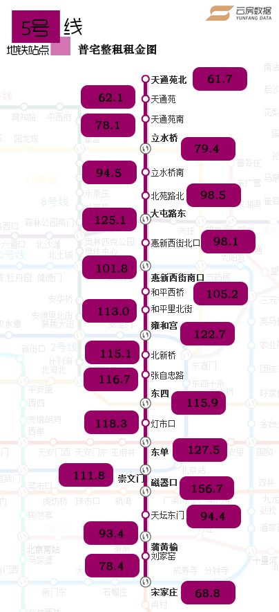 租金最低地铁站:宋家庄(68.8元/㎡/月)