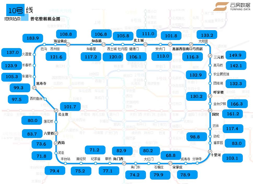云房数据研究中心整理了最新的北京所有地铁站点1000米(京西三条新线为2000米)范围内的小区楼盘租金数据,超出范围则不计。希望能为大家提供有用的参考!