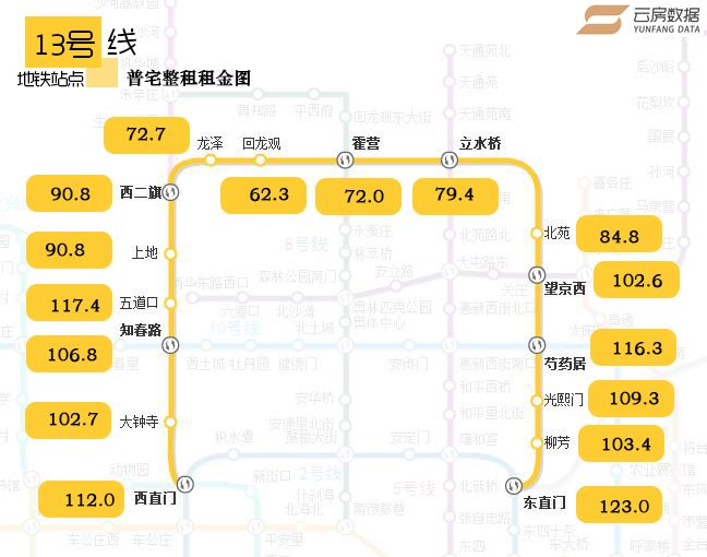 租金最贵地铁站:西二旗(91.3元/㎡/月)