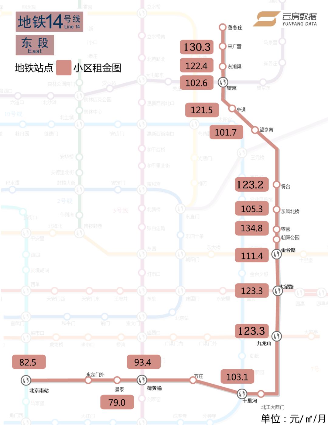 租金最贵地铁站:东大桥(141.4元/㎡/月)