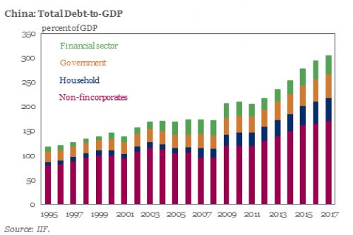 IFF称,中国是全球债务增长的最大部分来源,全国负债总额已经是GDP的300%。