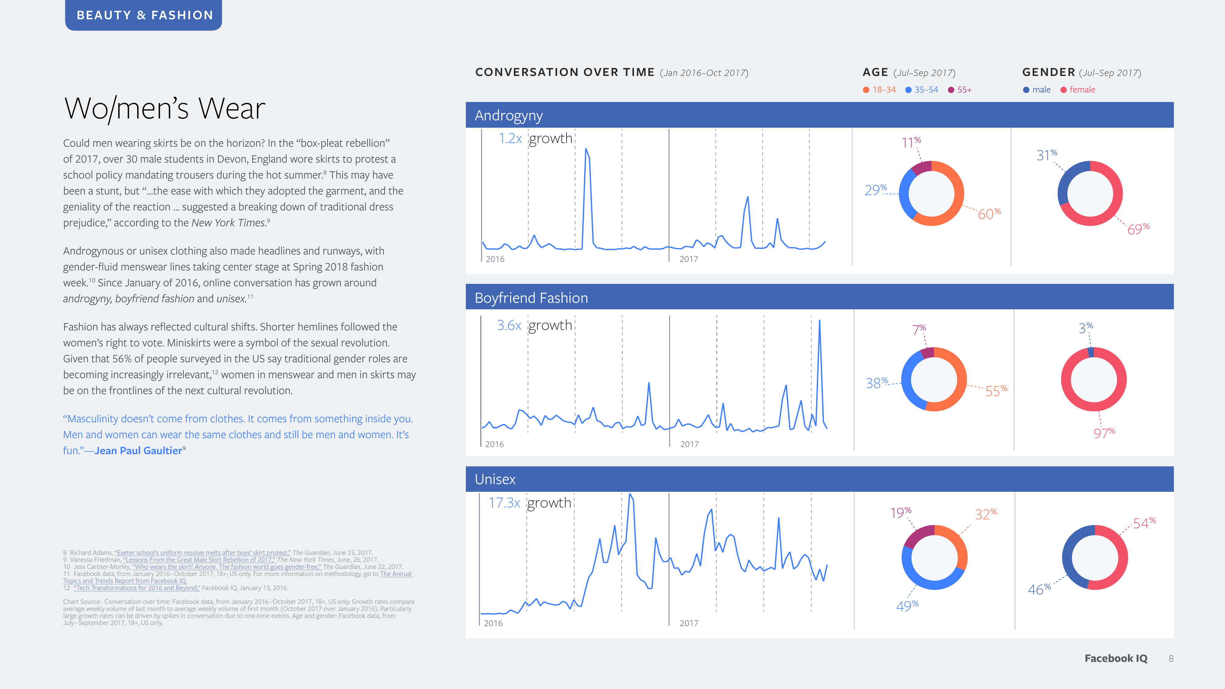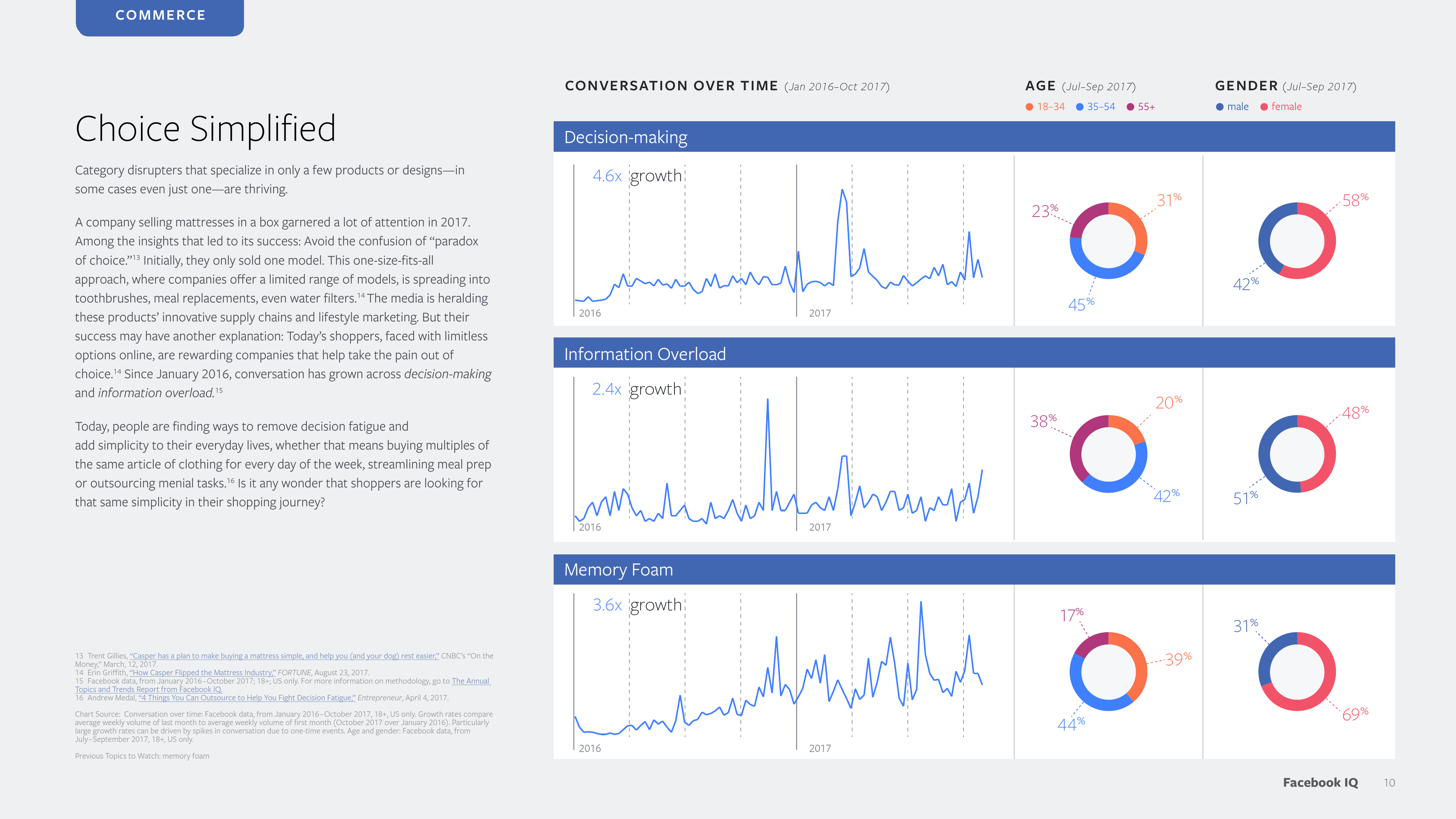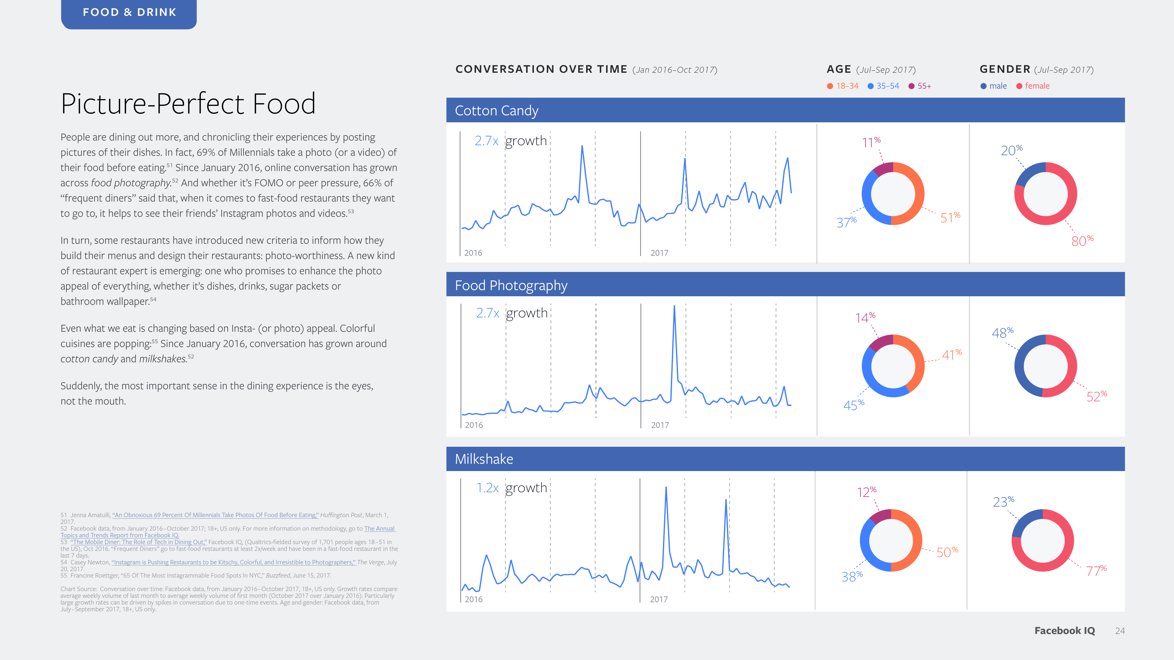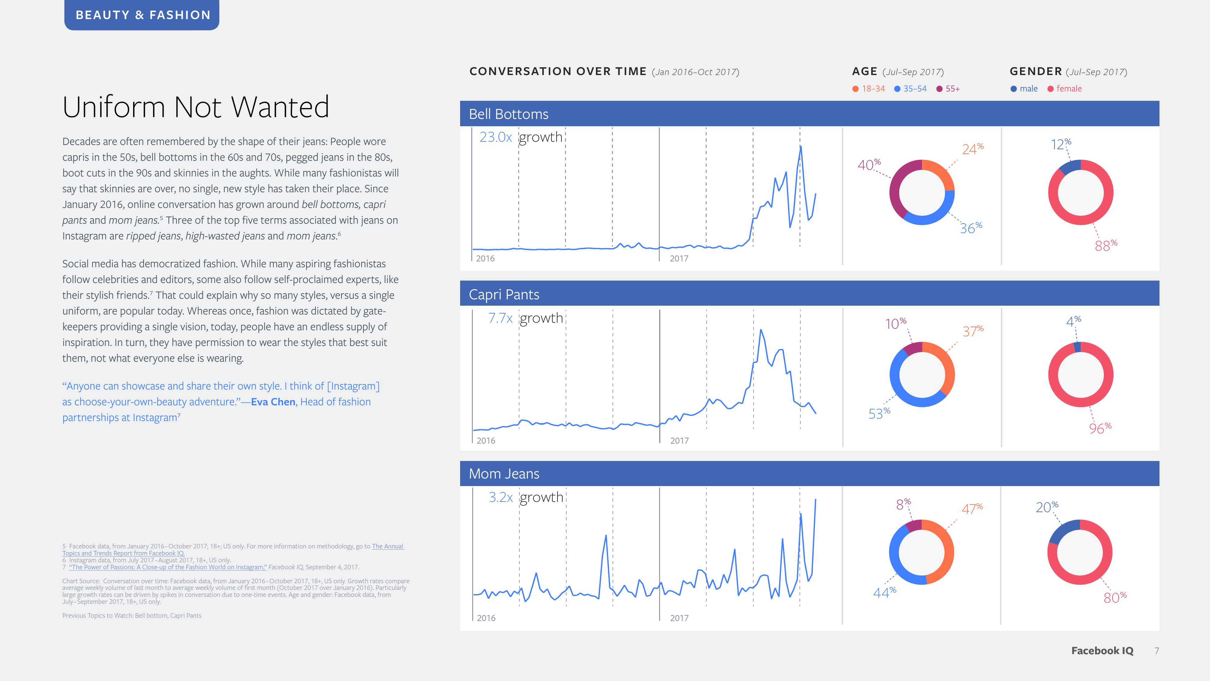 在分析这些调研结果有效性的过程中,我们还发现了正在兴起的其他对话。这些对话支撑起当下热门的话题,预示着更汹涌的文化趋势即将来袭。Facebook IQ 受众、行业调研和第三方研究为我们的调研结果提供了依据。