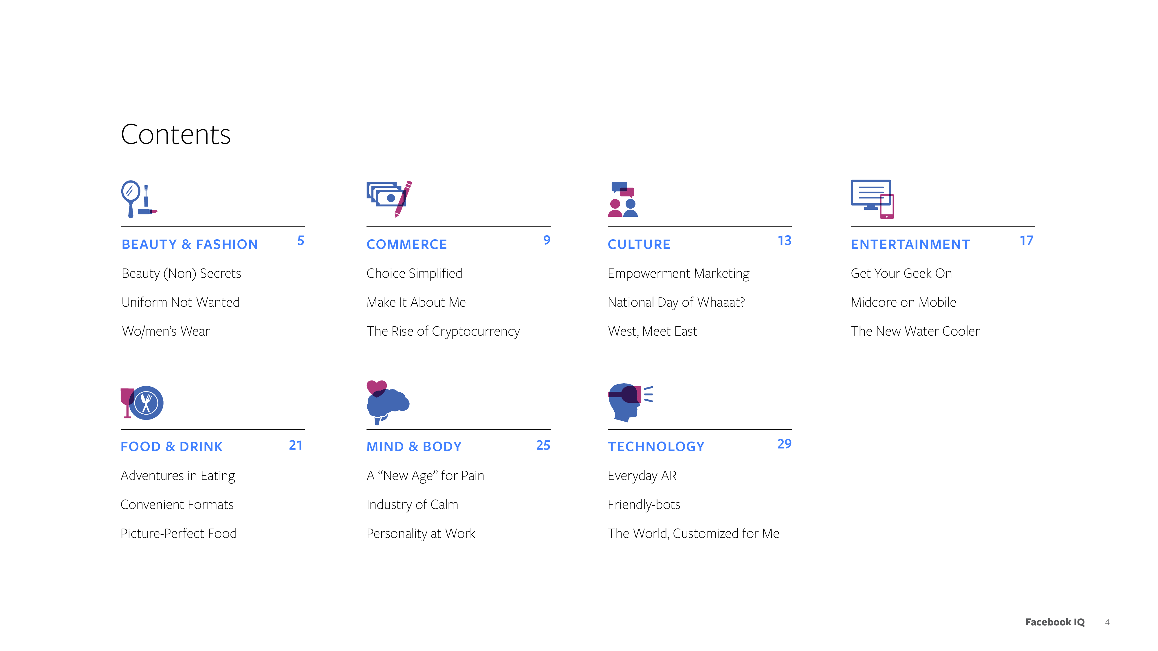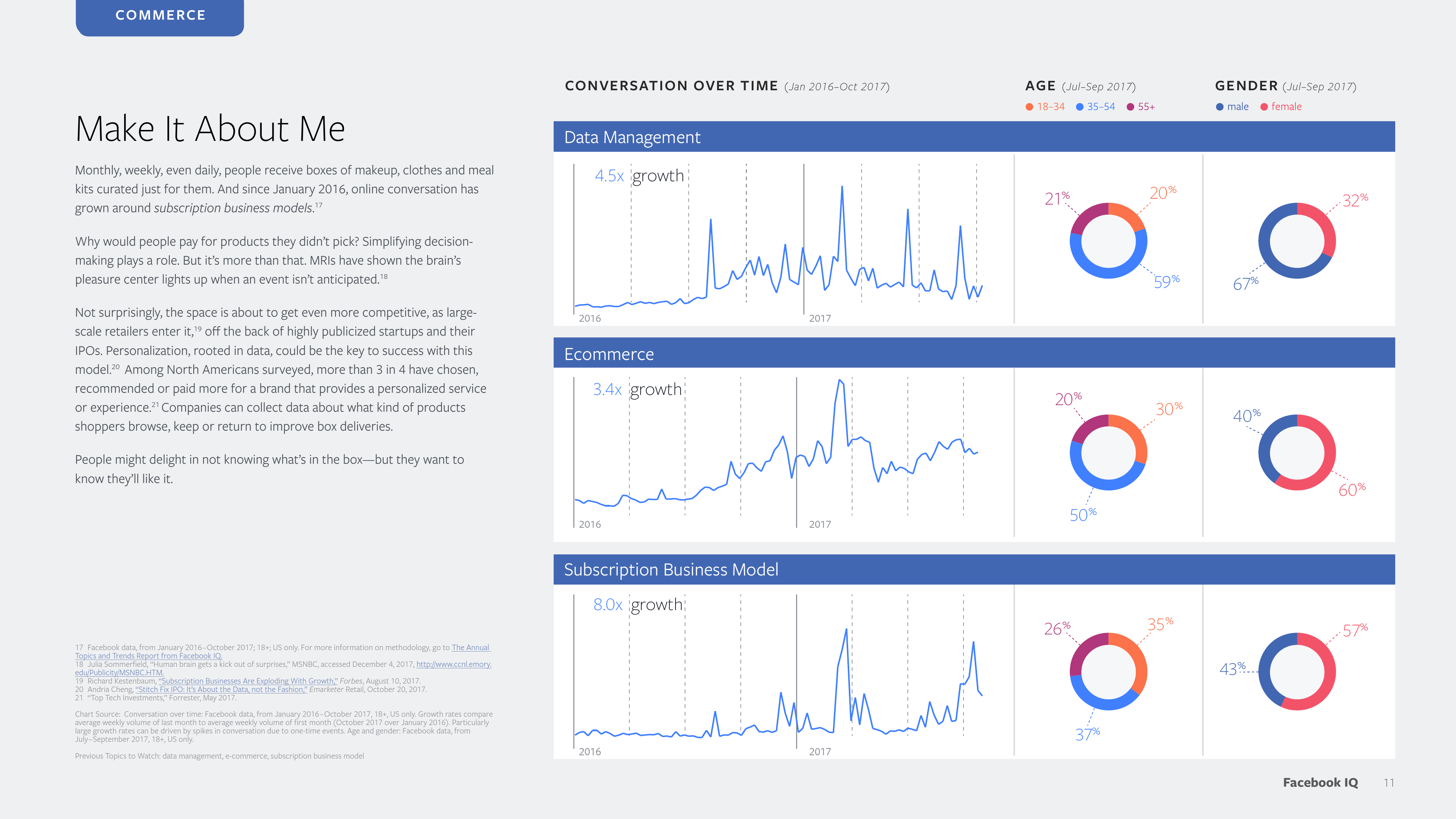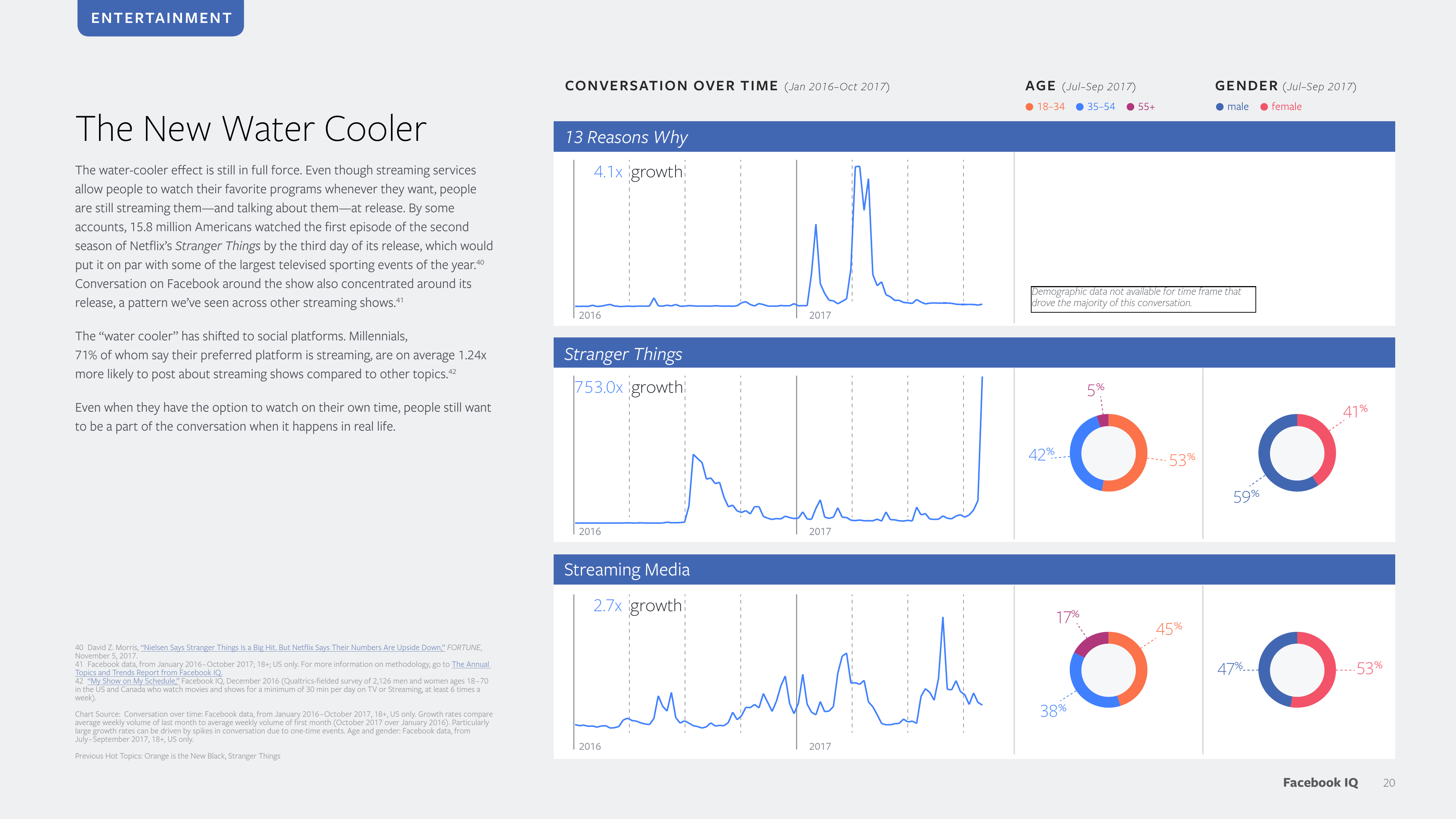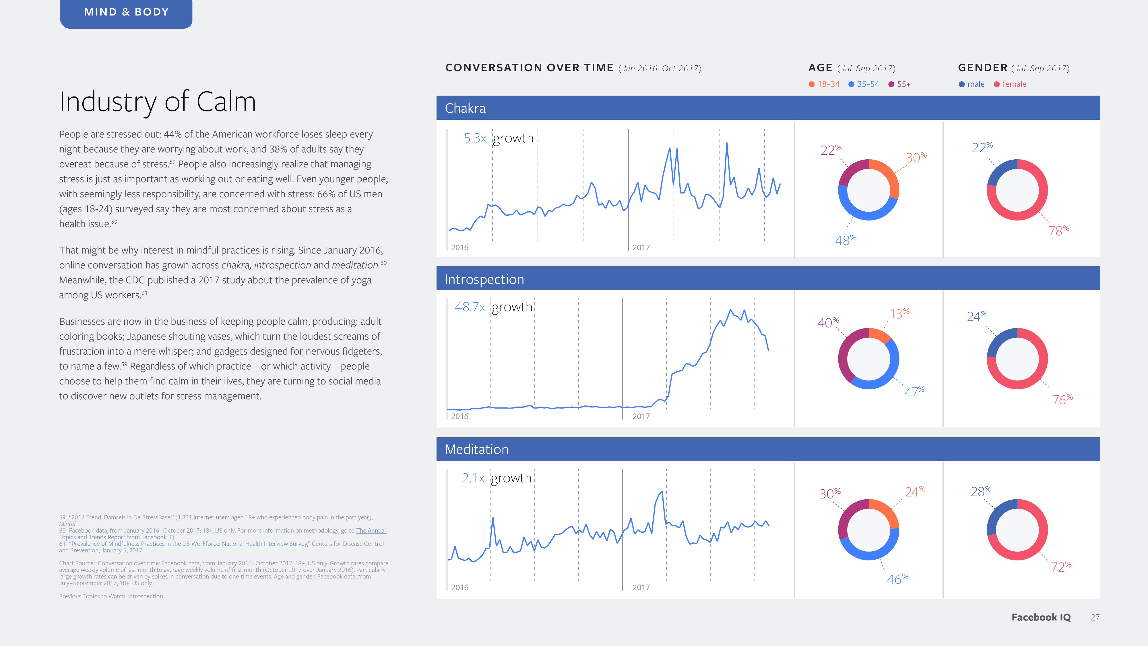在分析这些调研结果有效性的过程中,我们还发现了正在兴起的其他对话。这些对话支撑起当下热门的话题,预示着更汹涌的文化趋势即将来袭。Facebook IQ 受众、行业调研和第三方研究为我们的调研结果提供了依据。