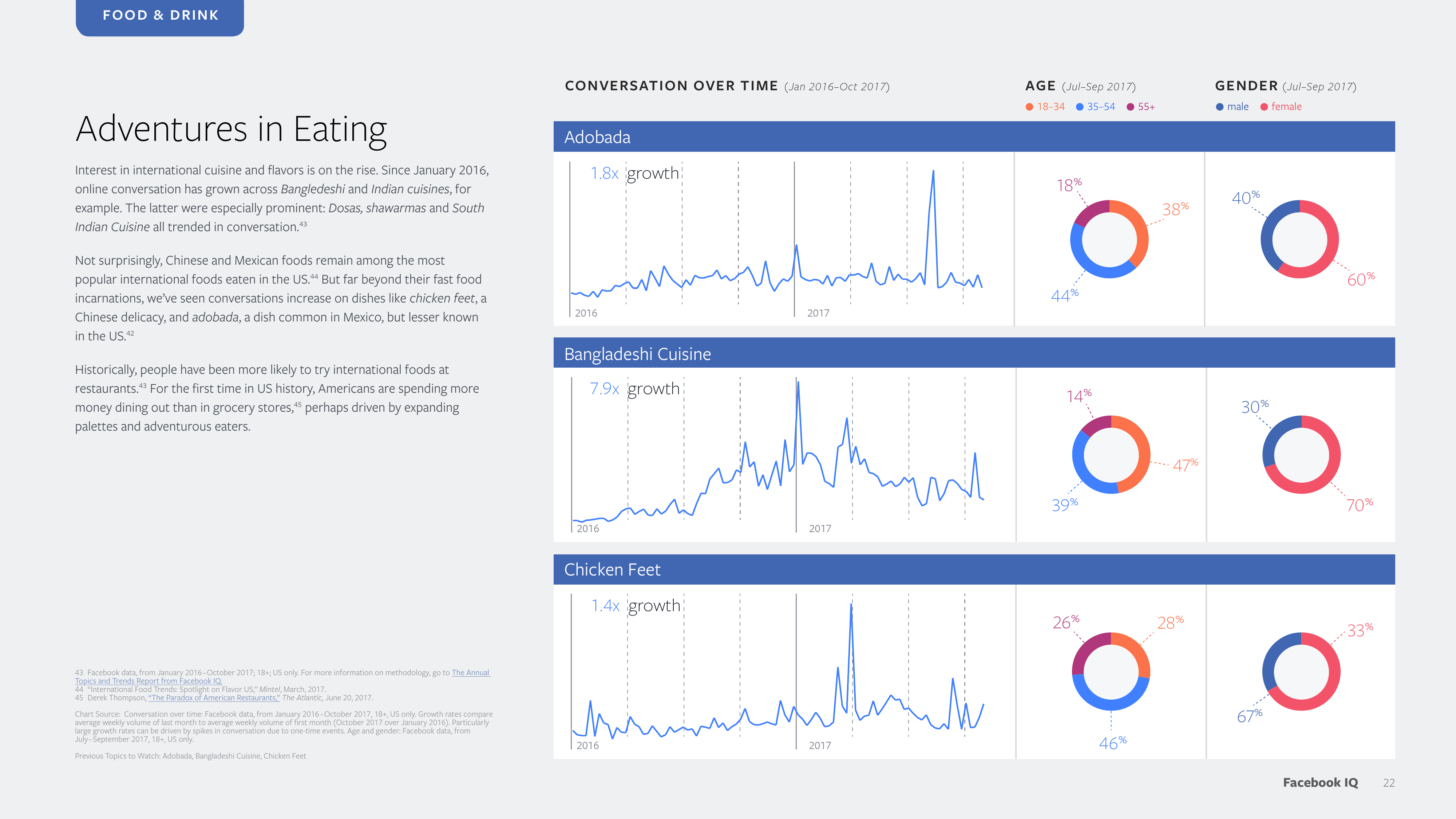 Facebook 平台庞大的用户基数让我们拥有得天独厚的优势,能够发现哪些话题正在迅速升温,成为主流,哪些话题只是昙花一现,转瞬即逝。这些结果建立在来自 Facebook 20 亿用户真实可靠的数据和洞察分析的基础之上。