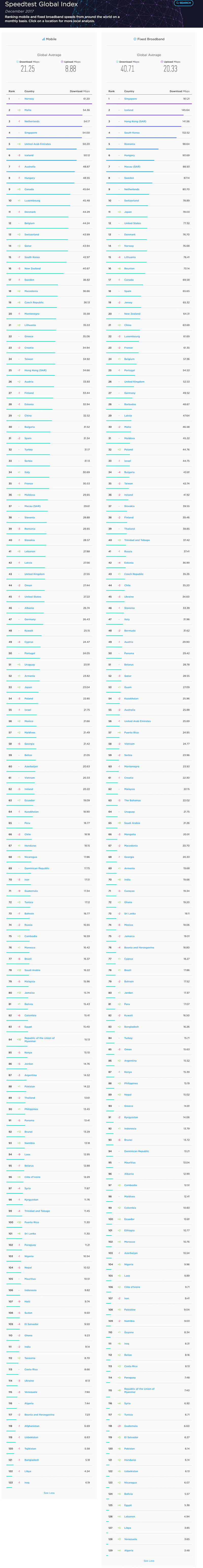 网速测试网站Ookla最新的《速度测试全球指数》(Speed Test Global Index)报告于近日公布。