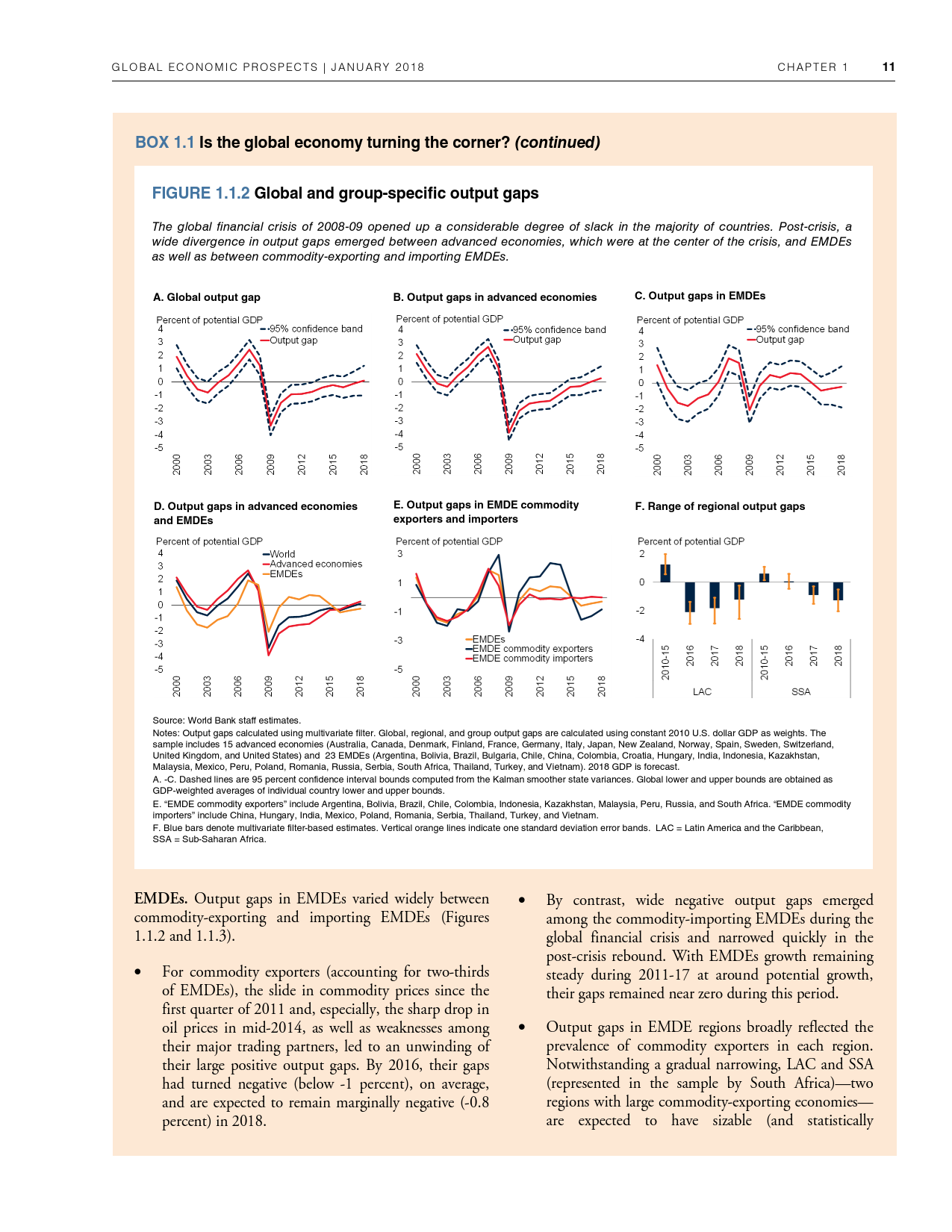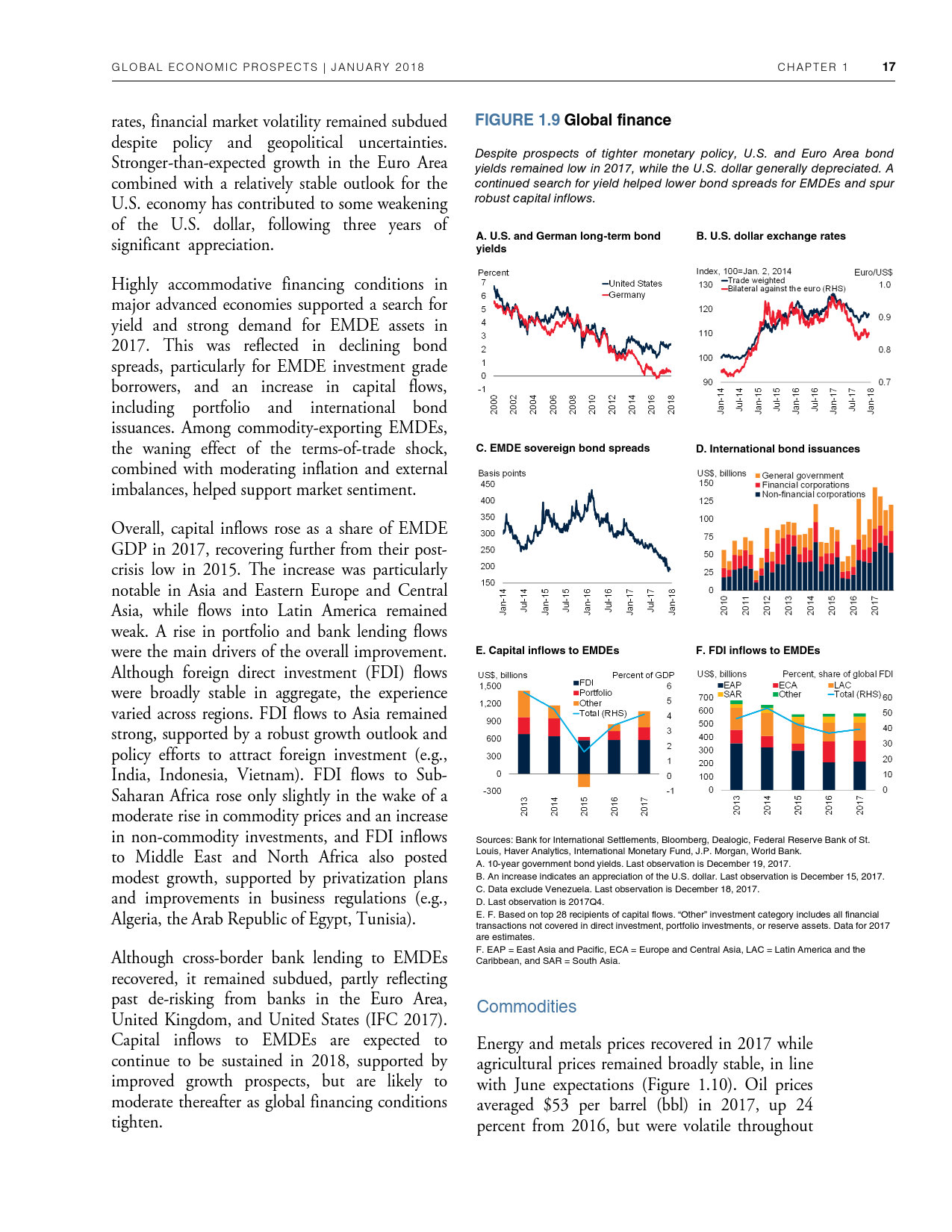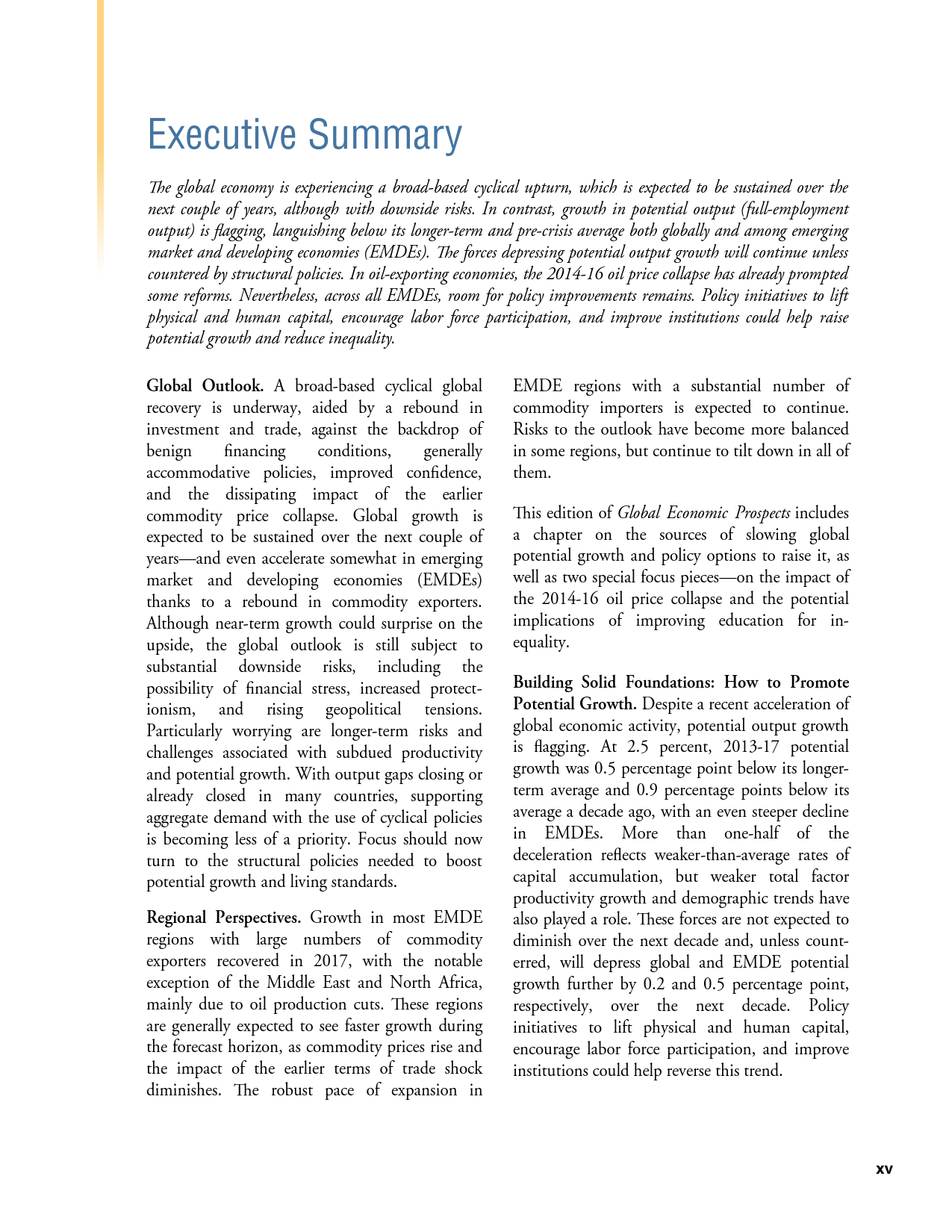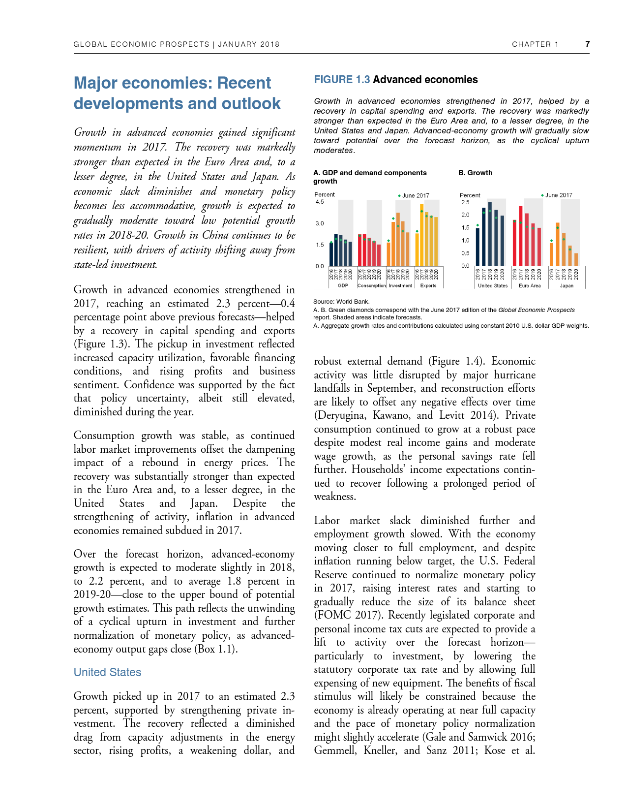 除了探讨全球和地区层面的发展趋势外,《2018年全球经济展望》1月期还研究了六大地区的潜在增长率前景、2014-2016年油价暴跌的教训以及新兴市场和发展中经济体技能和教育水平上升与不平等程度下降之间的联系。