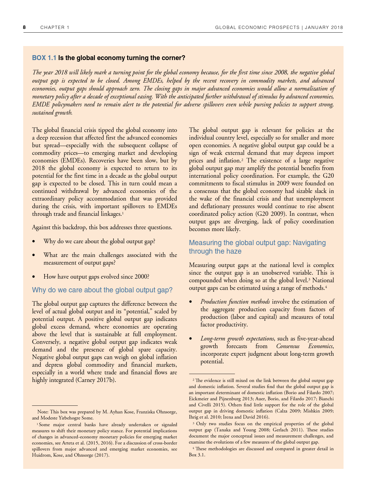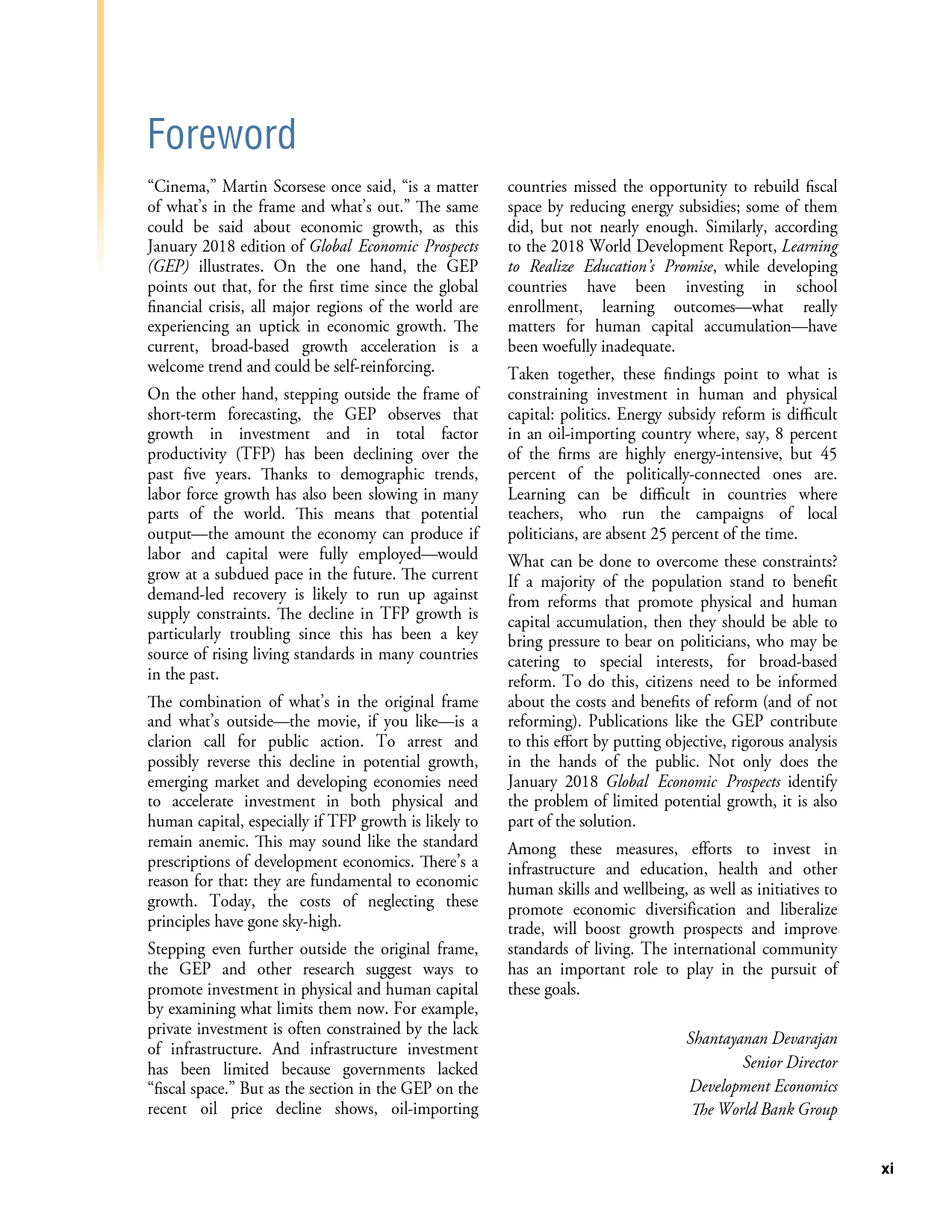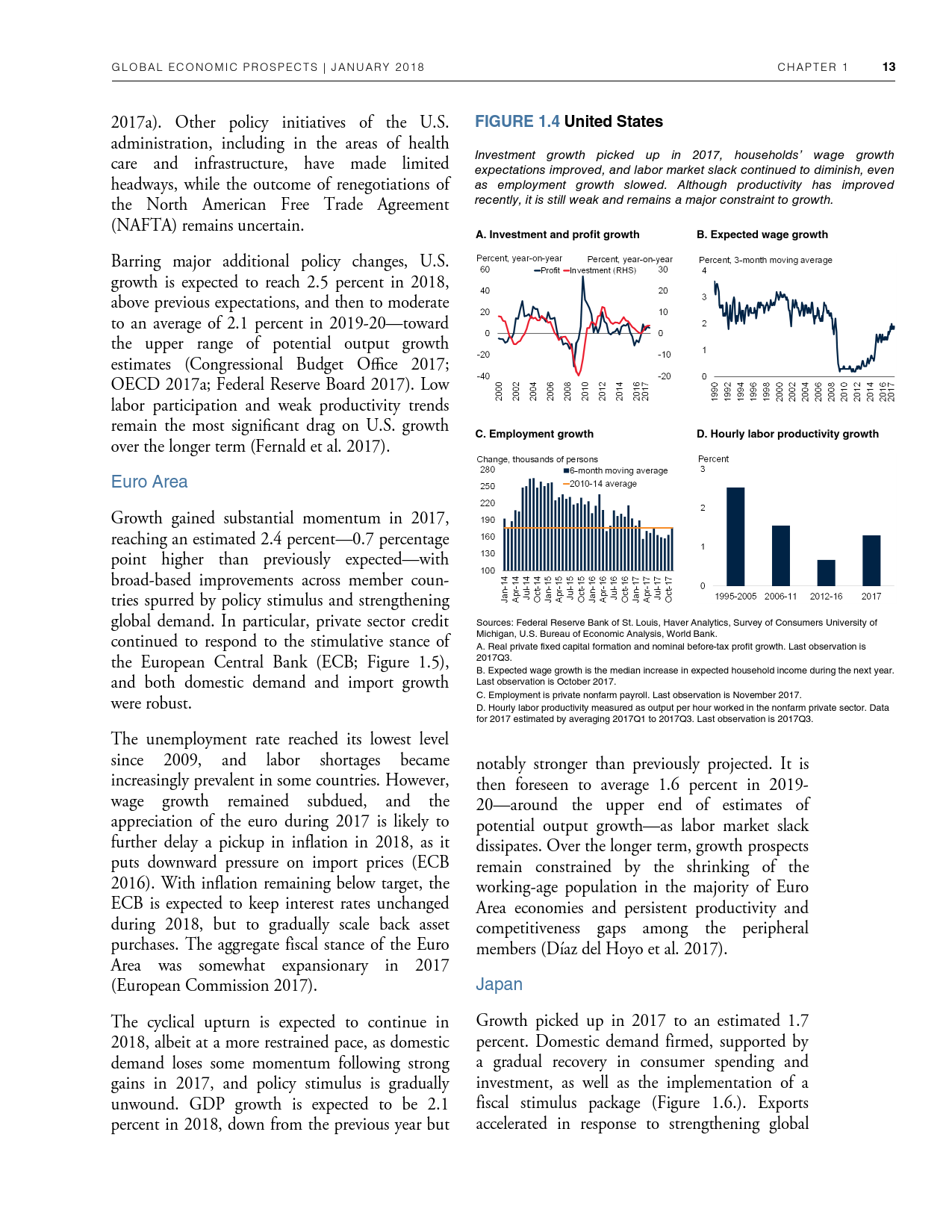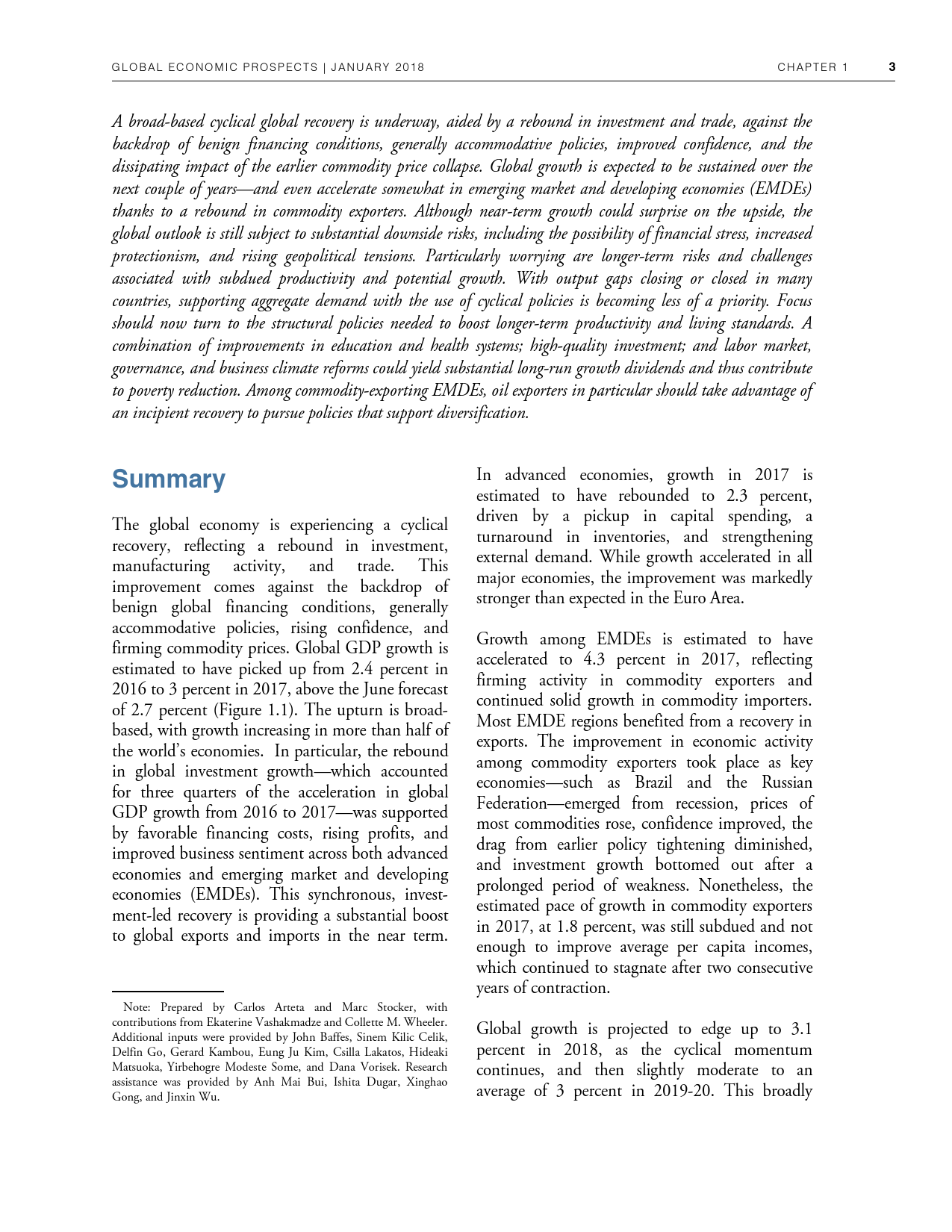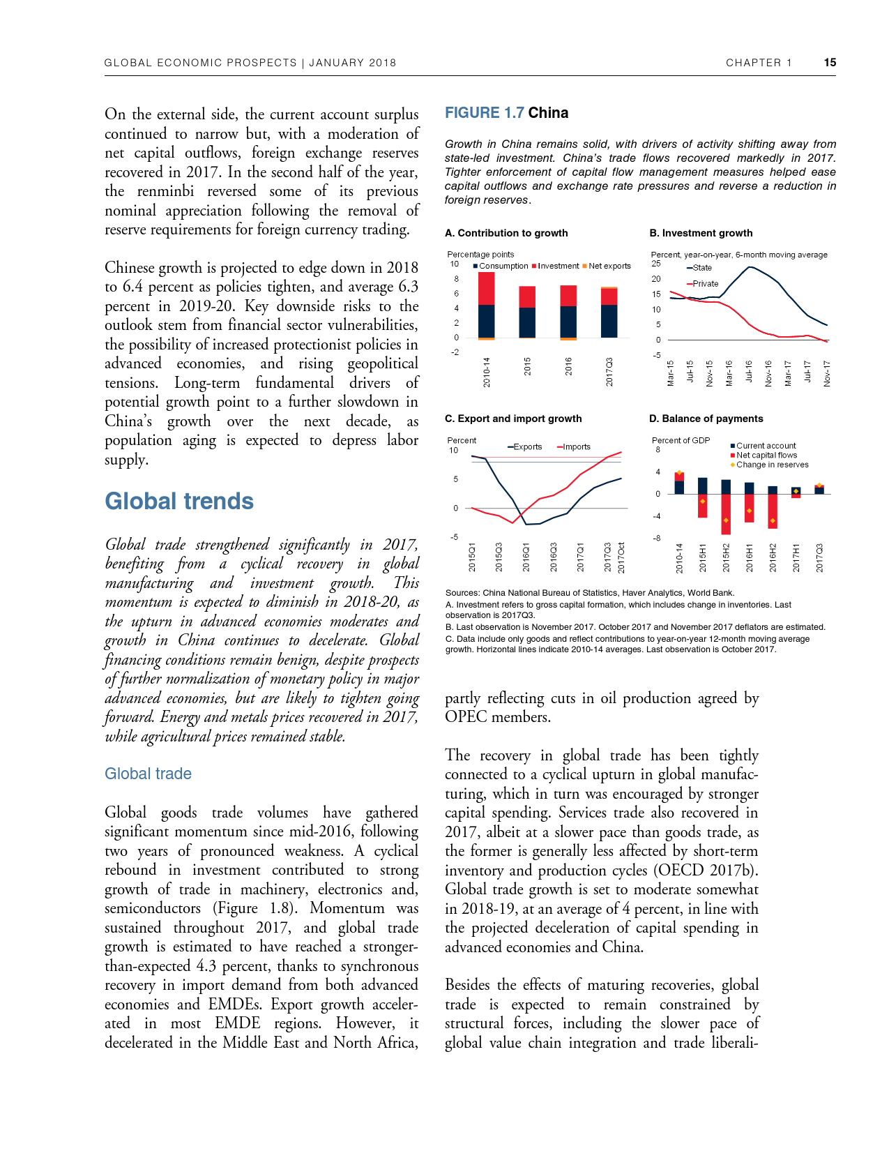 除了探讨全球和地区层面的发展趋势外,《2018年全球经济展望》1月期还研究了六大地区的潜在增长率前景、2014-2016年油价暴跌的教训以及新兴市场和发展中经济体技能和教育水平上升与不平等程度下降之间的联系。