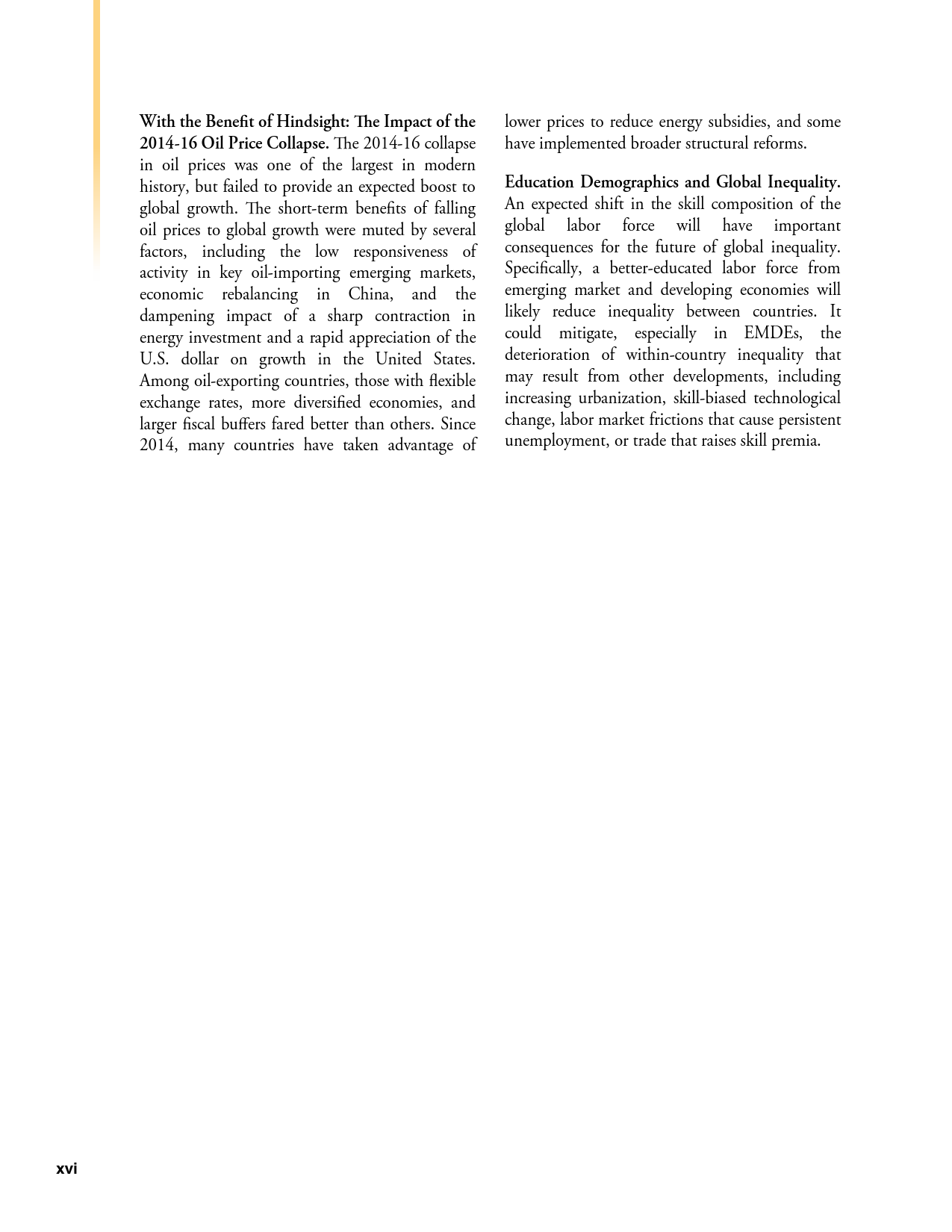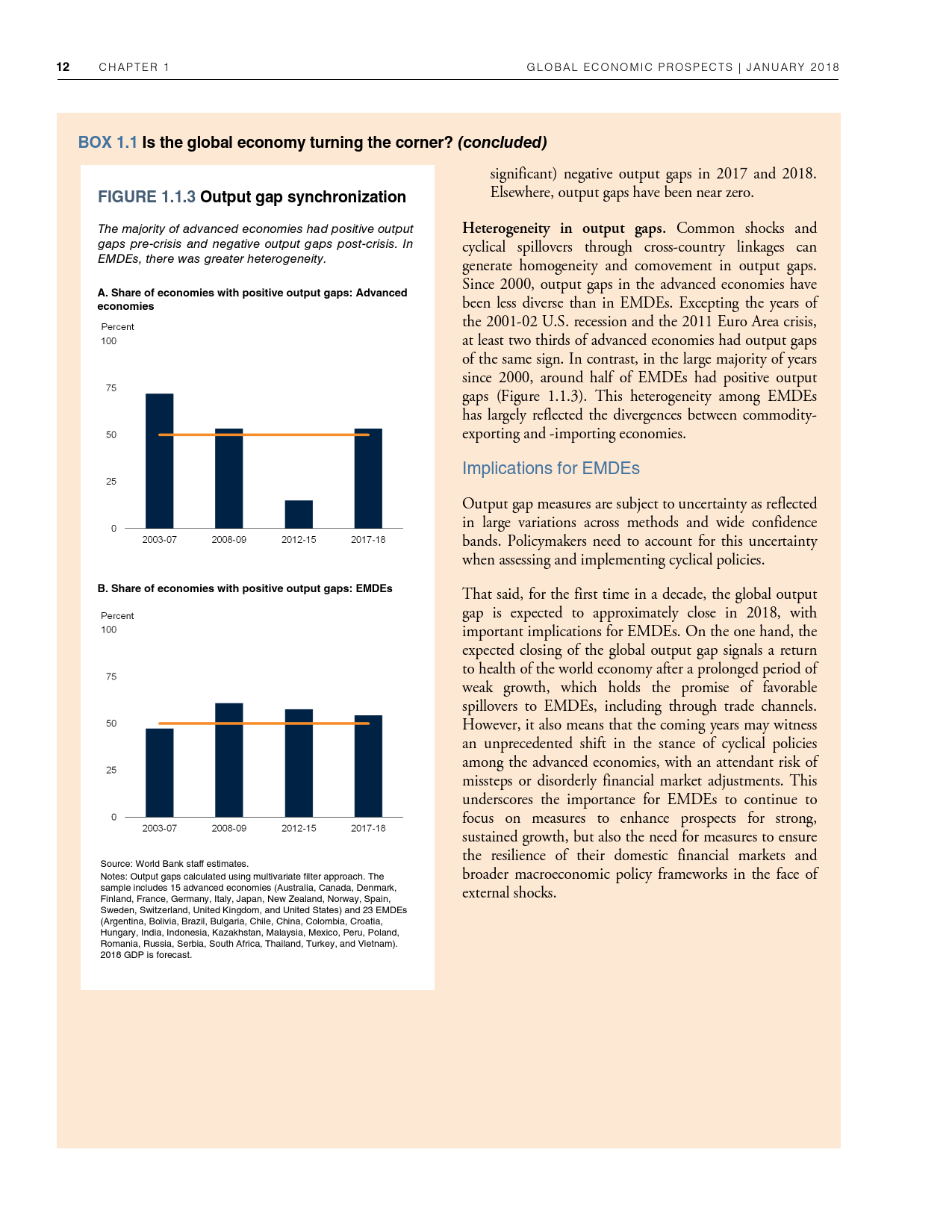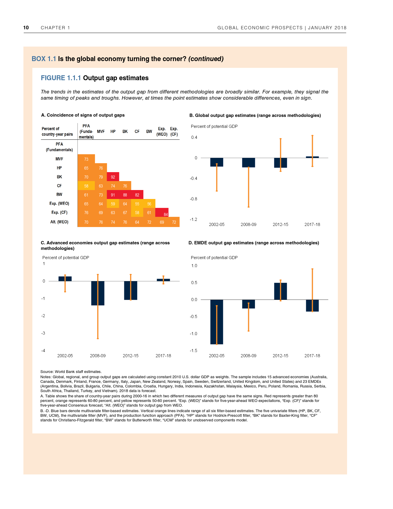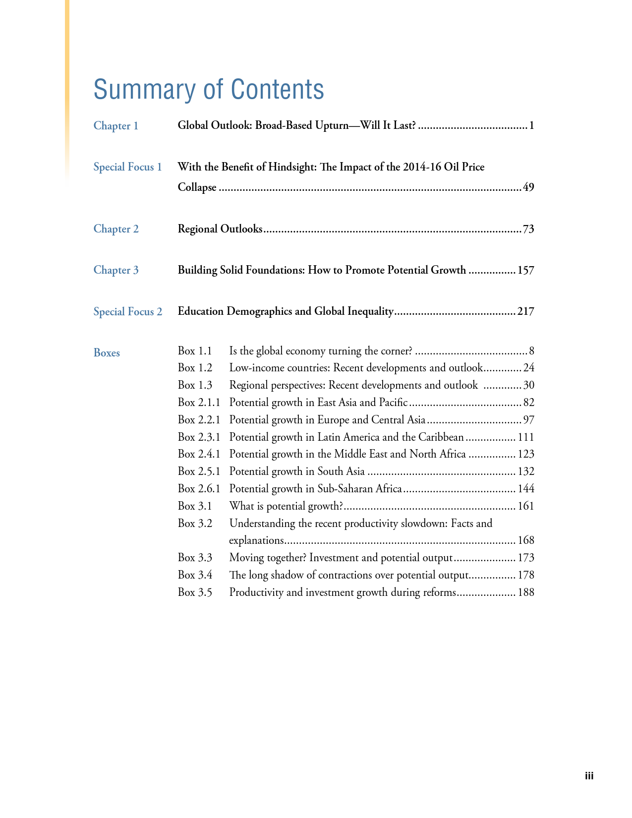 除了探讨全球和地区层面的发展趋势外,《2018年全球经济展望》1月期还研究了六大地区的潜在增长率前景、2014-2016年油价暴跌的教训以及新兴市场和发展中经济体技能和教育水平上升与不平等程度下降之间的联系。