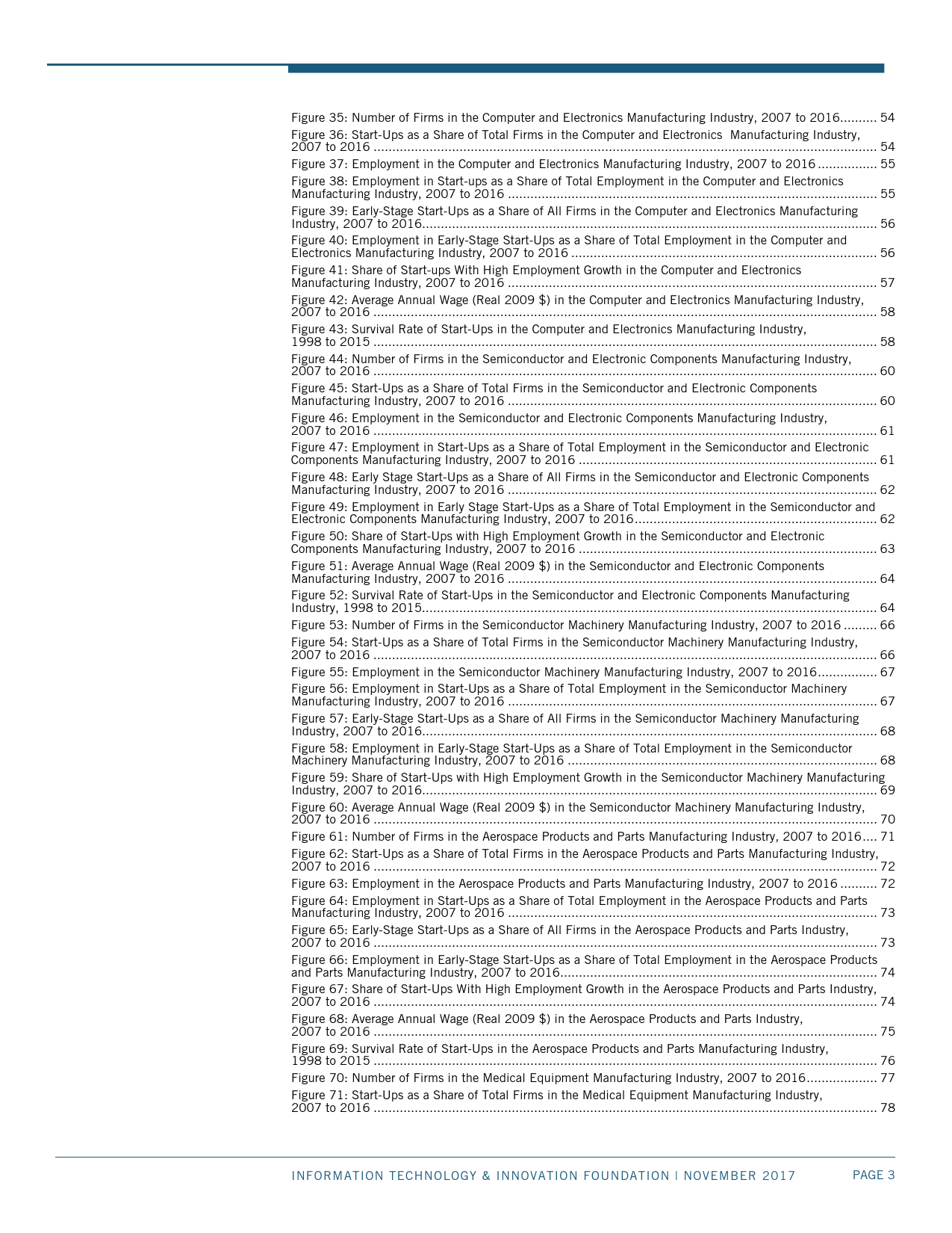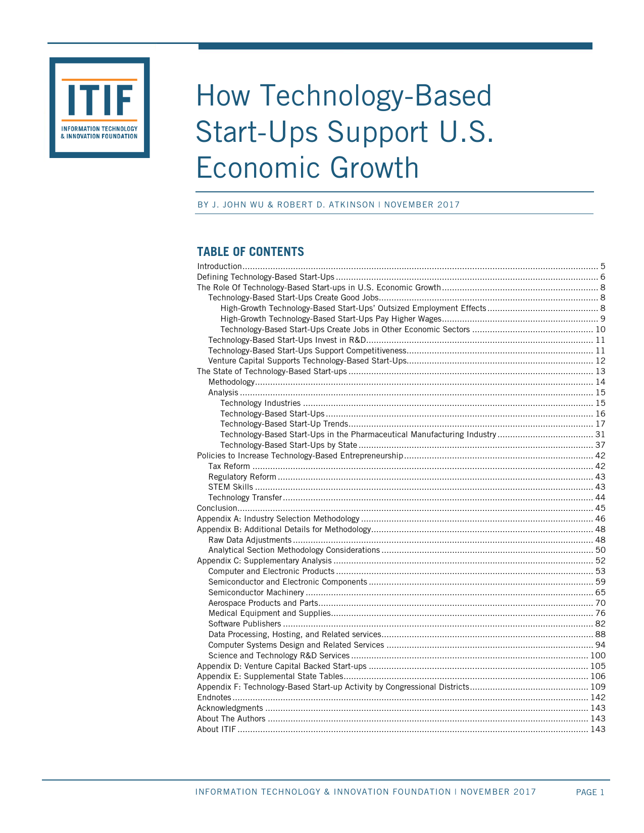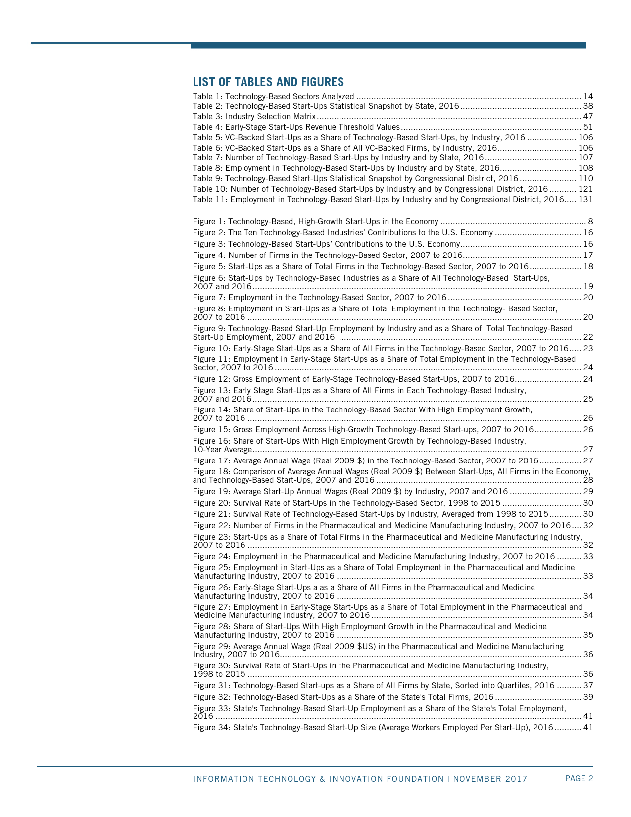报告第三部分为支持技术型初创企业的形成与增长提供了政策建议。此外,附录C提供了2007年到2016年美国各技术型产业中的初创企业的发展趋势;附录D包含了对2016年风险资本支持下的技术型初创企业的分析;附录E包括了2016年美国州层面十个行业技术型初创企业的实践,还对2016年美国435个选举区层面的技术型初创企业实践进行了分析。