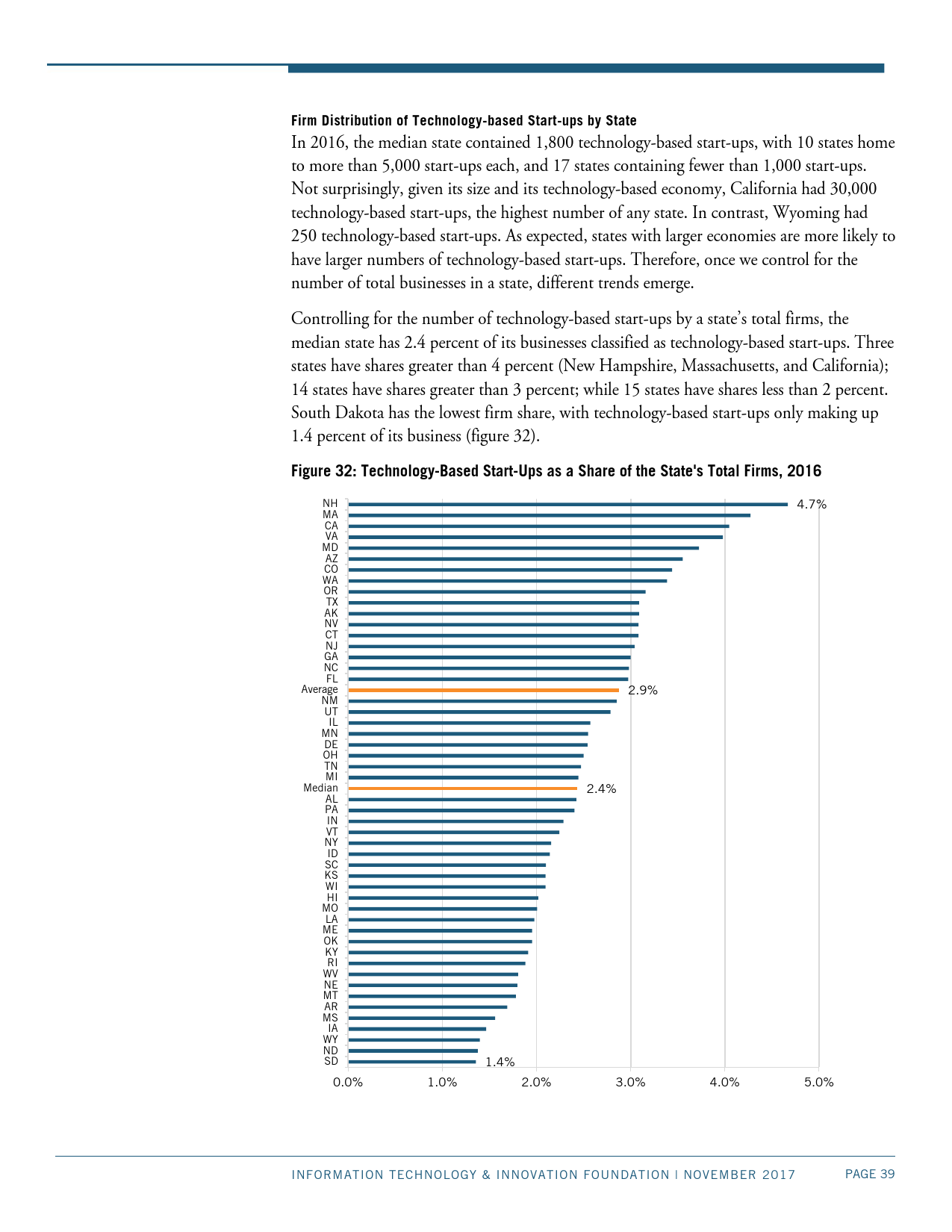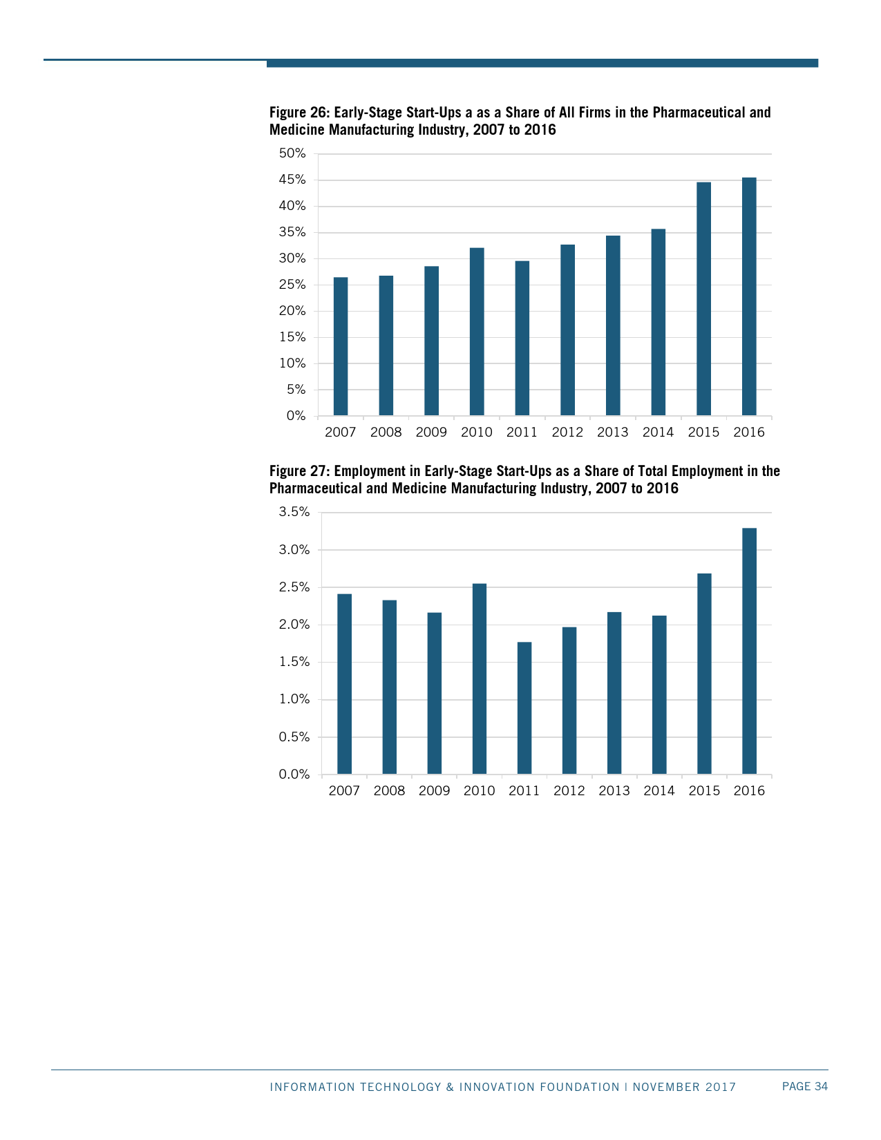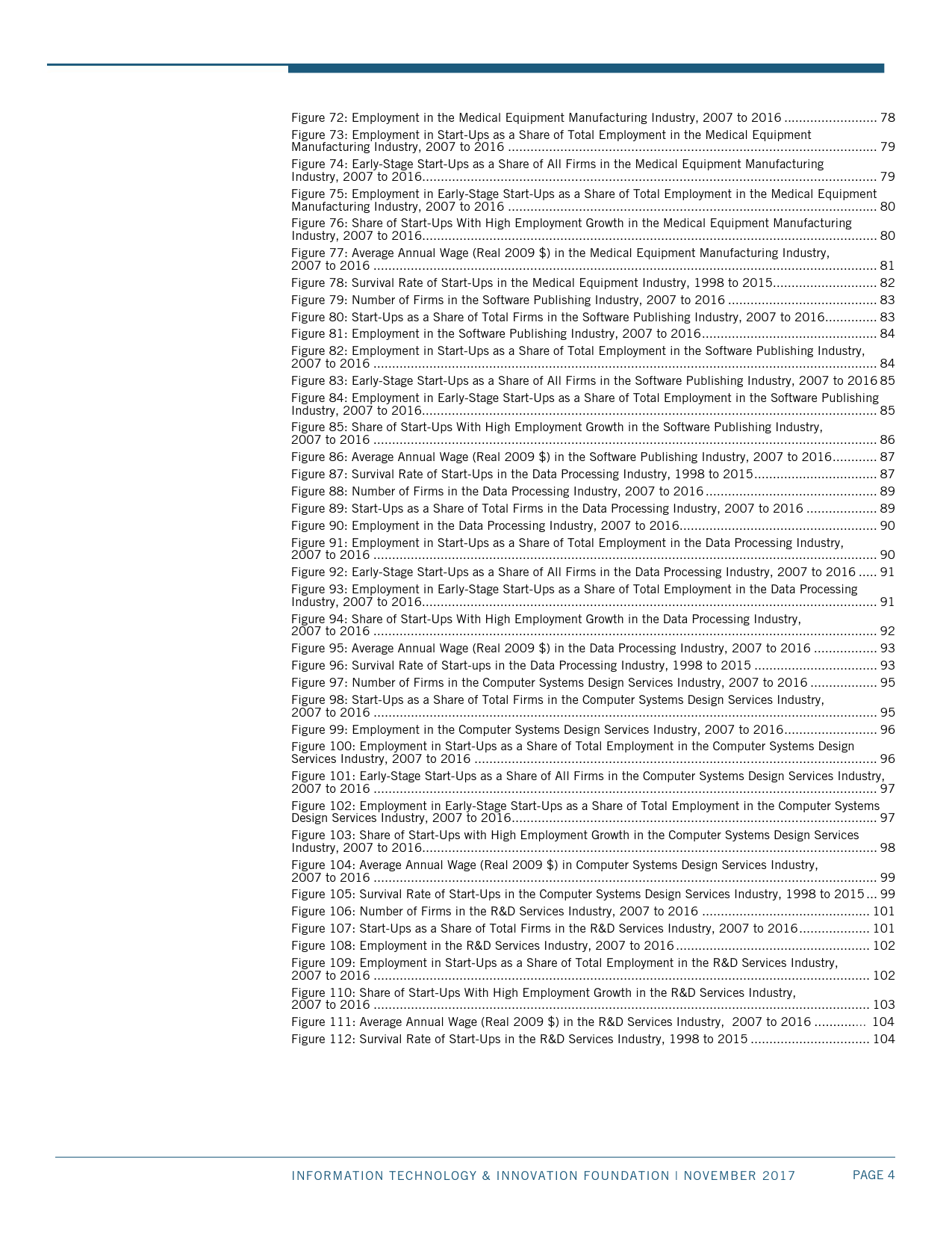 报告第三部分为支持技术型初创企业的形成与增长提供了政策建议。此外,附录C提供了2007年到2016年美国各技术型产业中的初创企业的发展趋势;附录D包含了对2016年风险资本支持下的技术型初创企业的分析;附录E包括了2016年美国州层面十个行业技术型初创企业的实践,还对2016年美国435个选举区层面的技术型初创企业实践进行了分析。