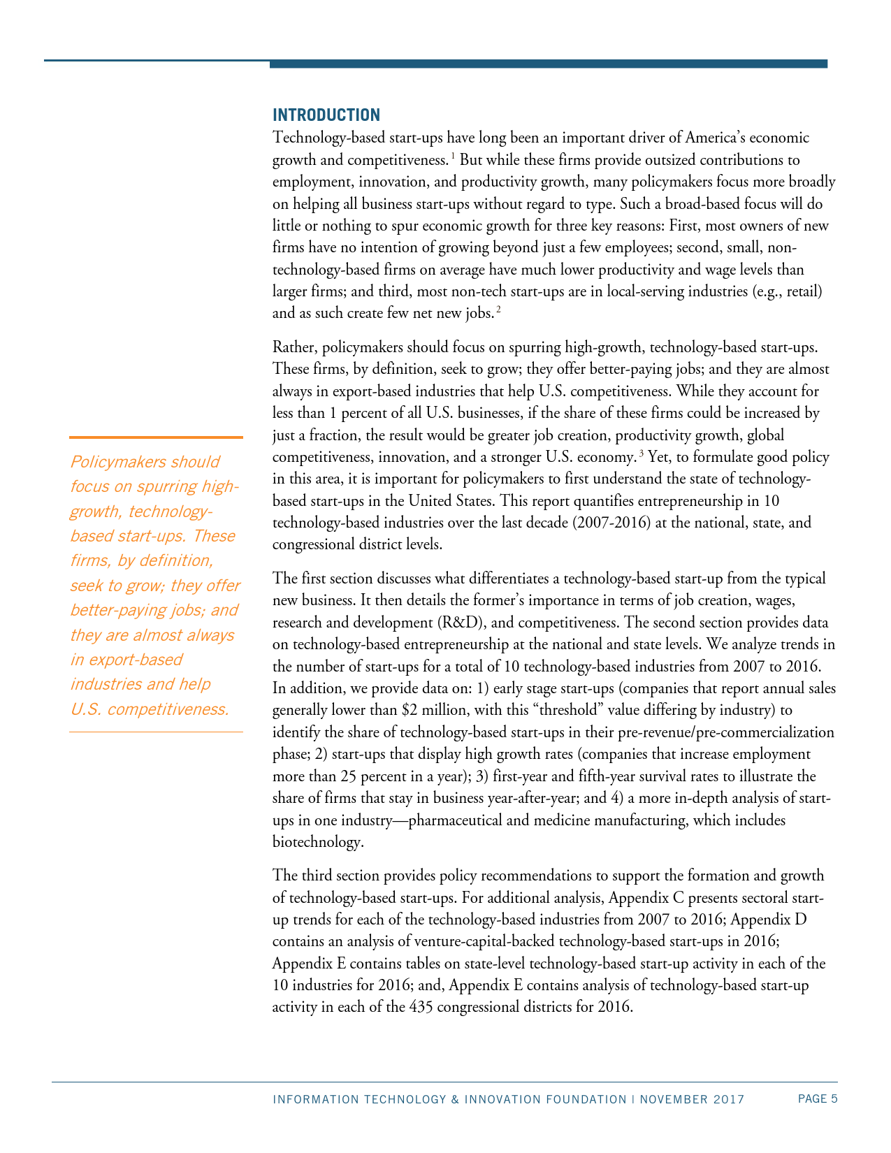 报告第一部分讨论了科技型初创企业与典型的新企业区别。详述了科技型初创企业在创造就业、工资、研发和竞争力等方面的重要性。