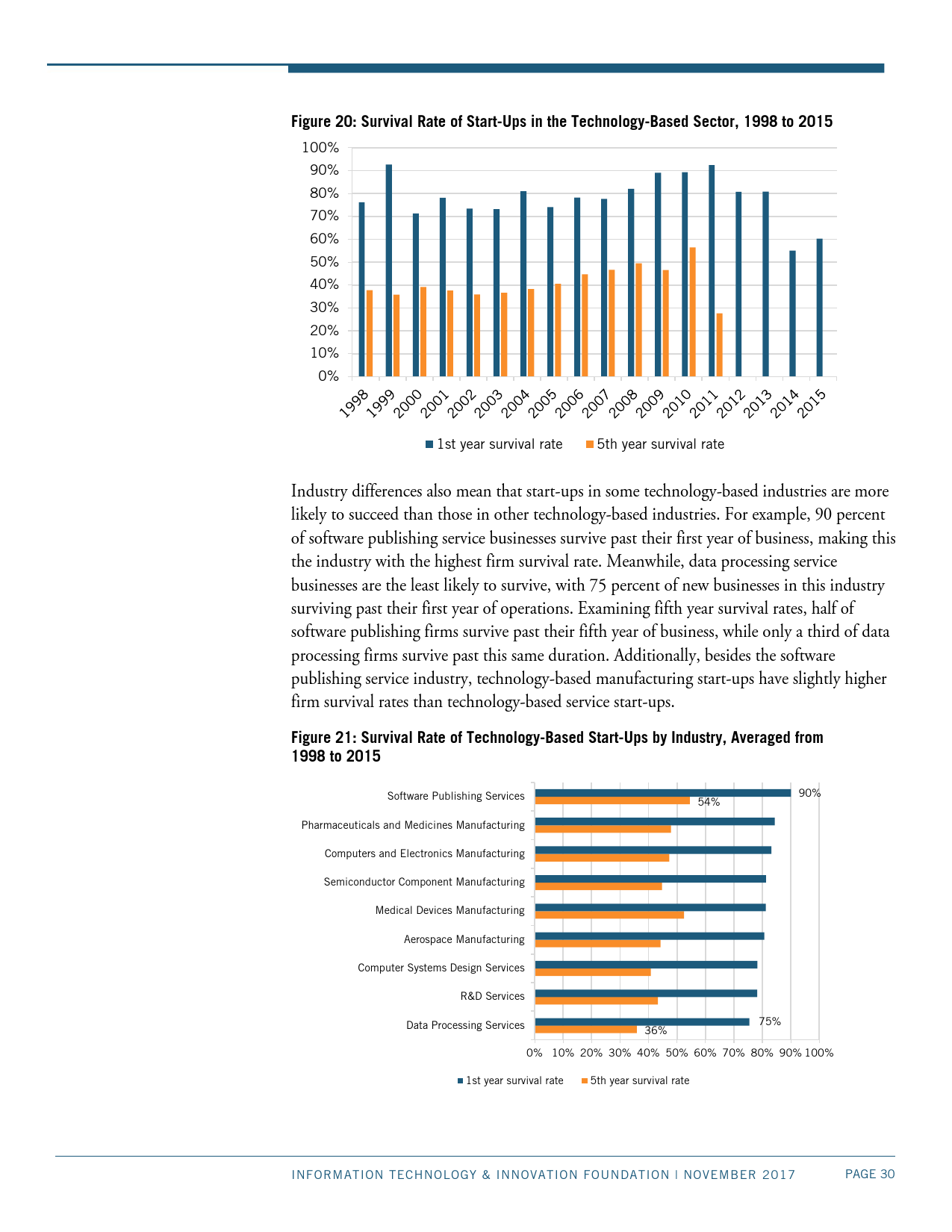 - 第一年和第五年的生存率数据,年复一年的展现技术型初创企业的份额;
