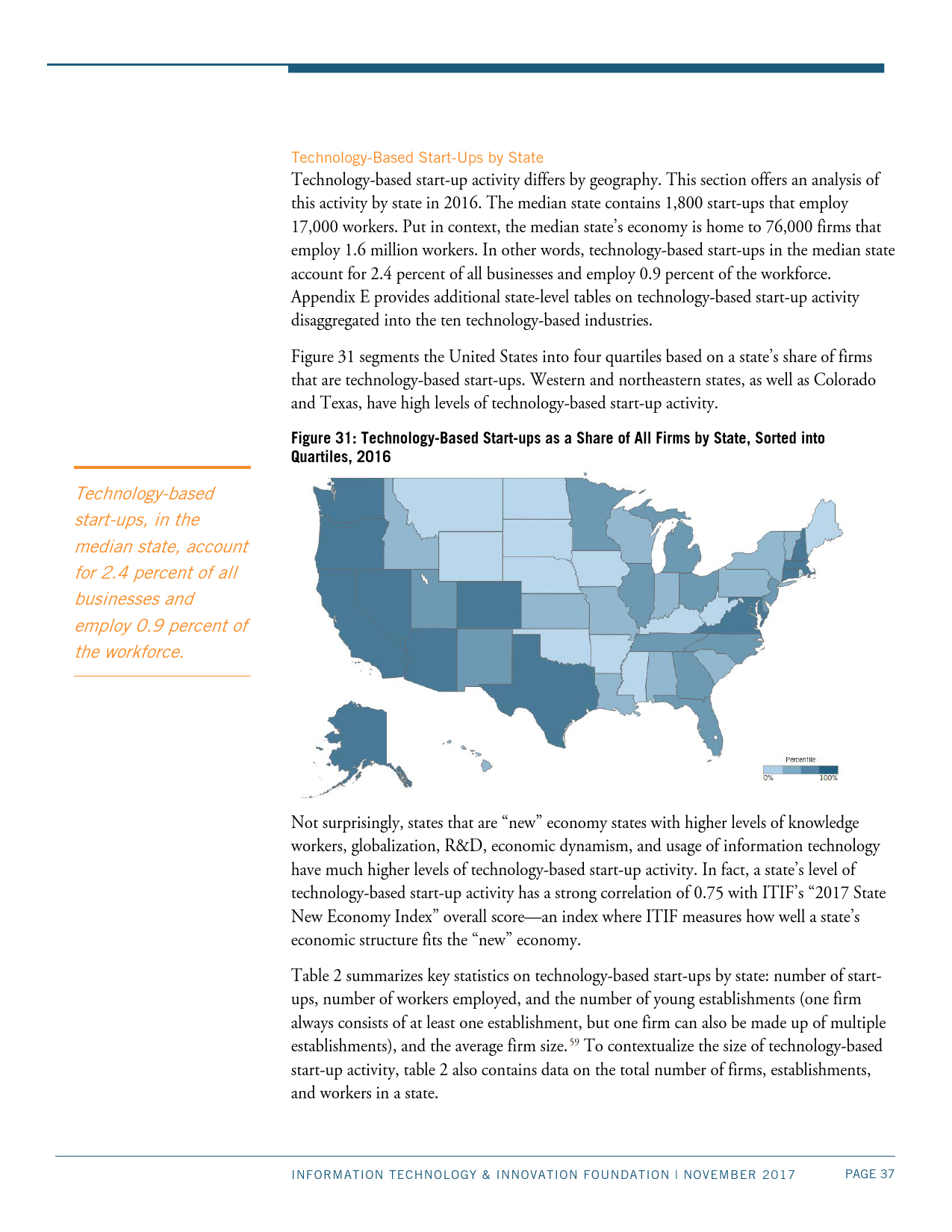 报告第二部分提供了国家和州层面科技型企业的数据。分析了2007-2016年间十个科技型产业的发展趋势。