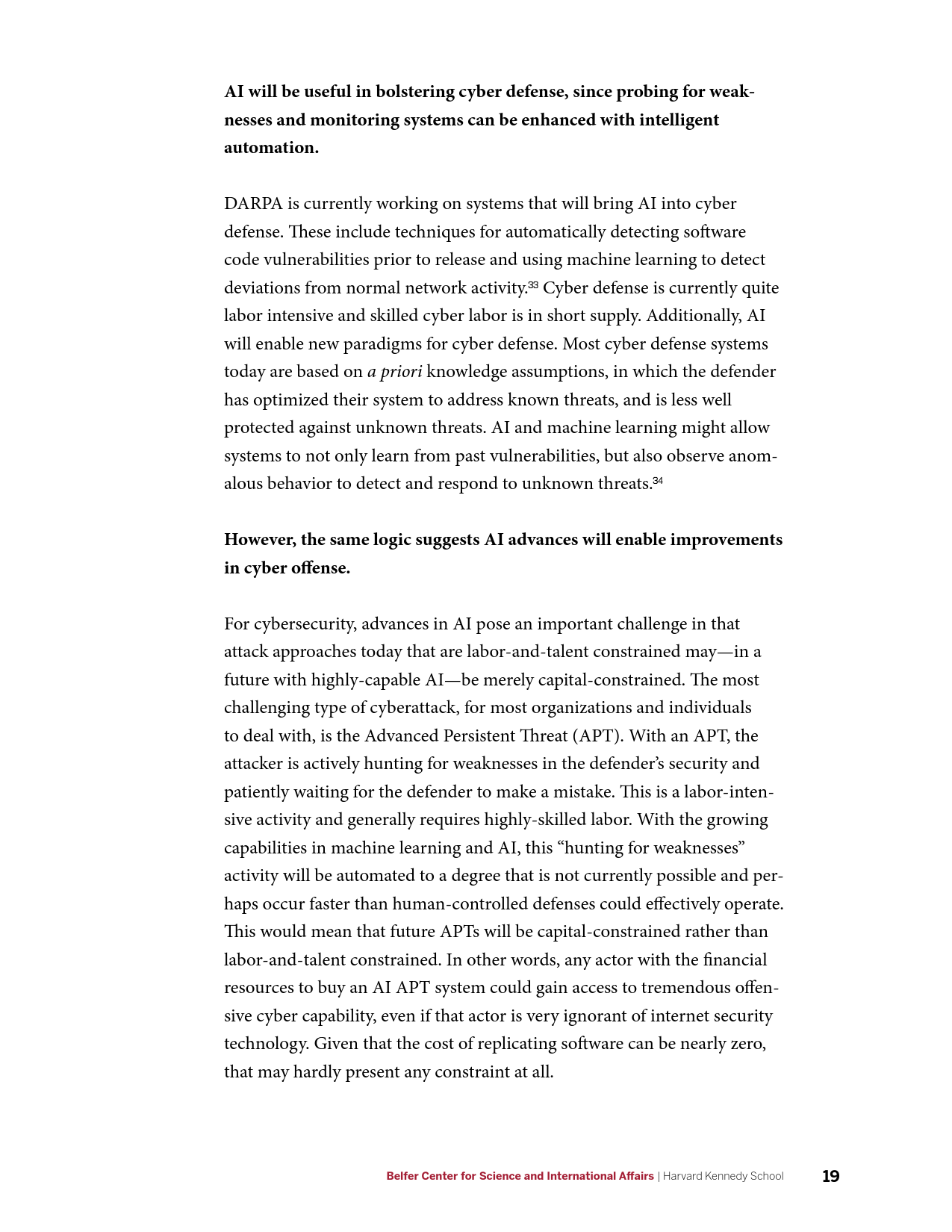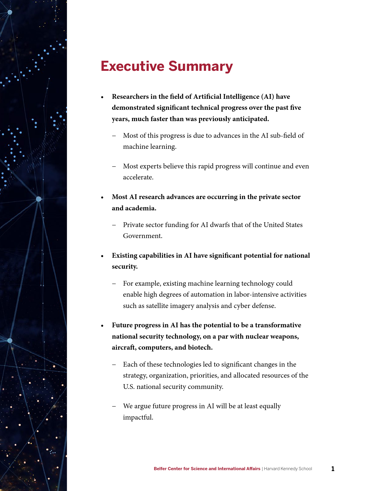 哈佛大学肯尼迪政治学院贝尔弗科学与国际事务中心7月发布《人工智能与国家安全》报告,分析人工智能(AI)对美国家安全的巨大影响,为美政府AI政策提供建议。
