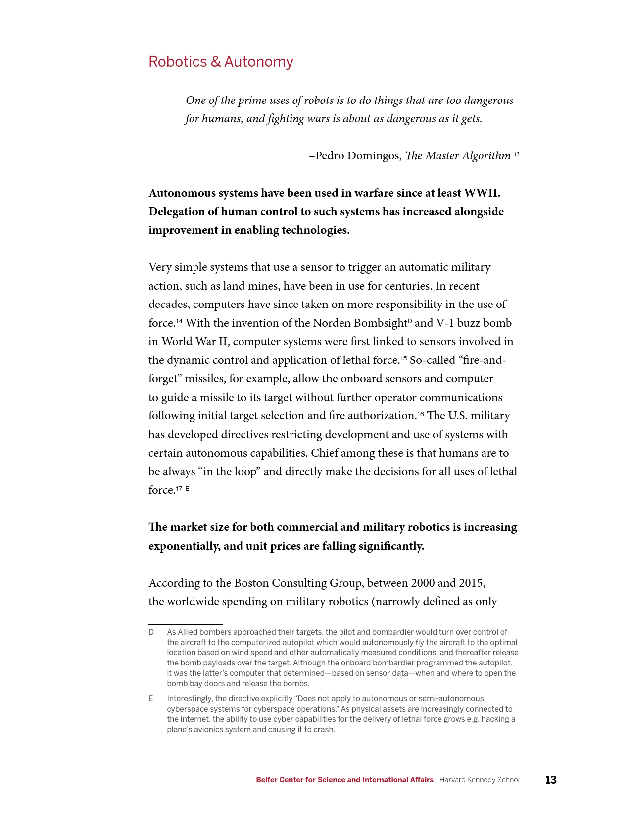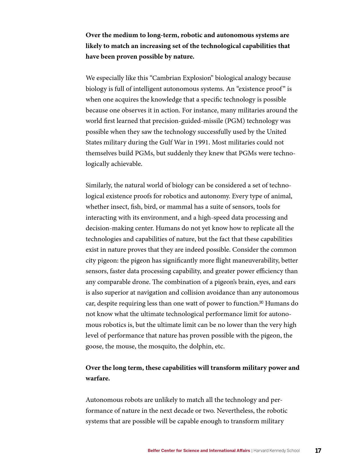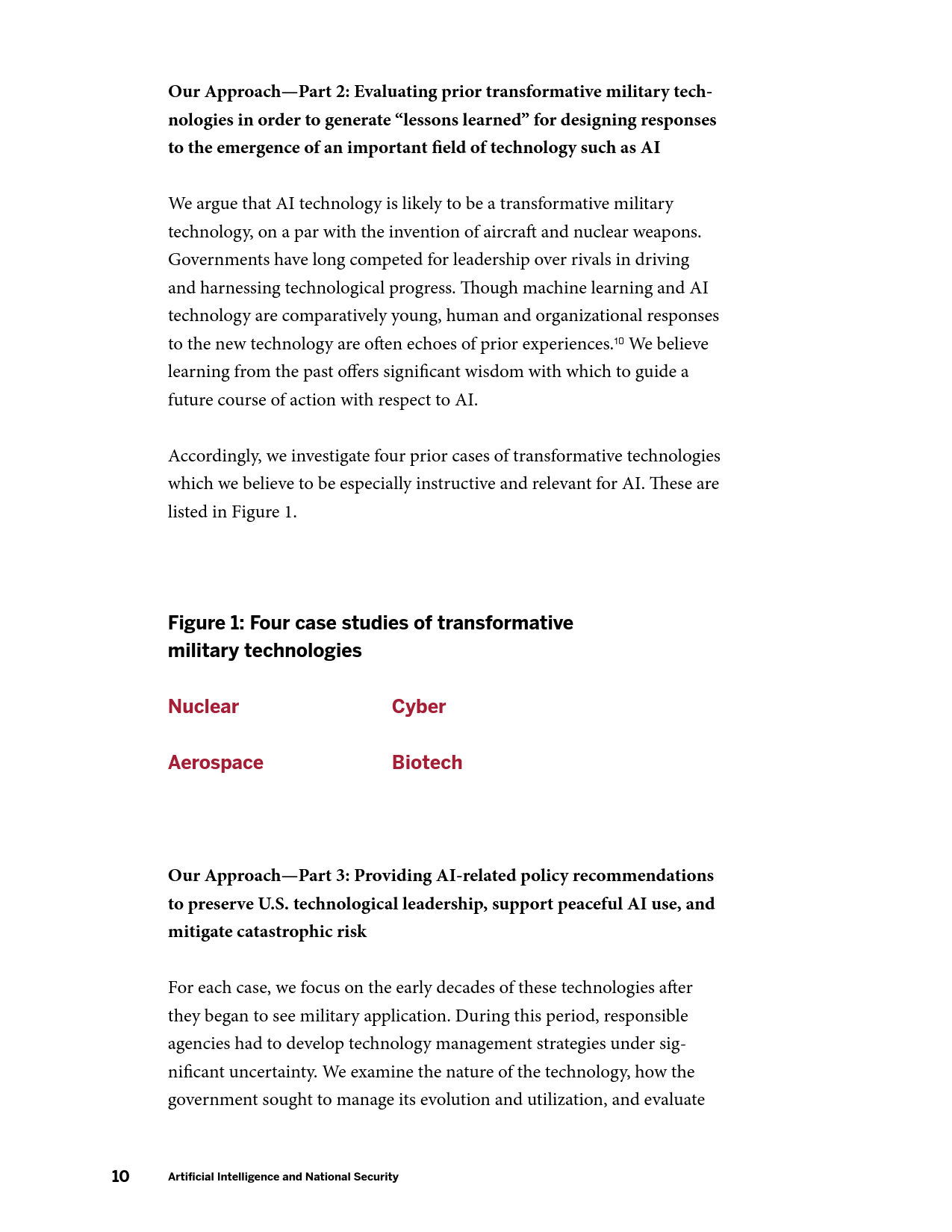 该机构分析了之前的核、航空航天、网络和生物技术4个变革性军事技术案例,从中提取出以下几条可用的经验和教训:激进的技术变革催生全新的政府政策及思想,世界各国政府将考虑甚至部分国家将采取相当激进的政策措施;AI在战争和间谍活动上的扩展应用是不可避免的,但必须设立更加温和的目标,对AI技术进行安全有效的管理;必须认识到AI技术固有的军民两用性,对突破性技术进行保密和保护,扩展民用颠覆性技术的分类和认证流程,限制商业公司向海外出售技术;应考虑成立正式的研发管理机构;应考虑确立AI军事情报应用的技术投资组合,建立长久的技术优势。