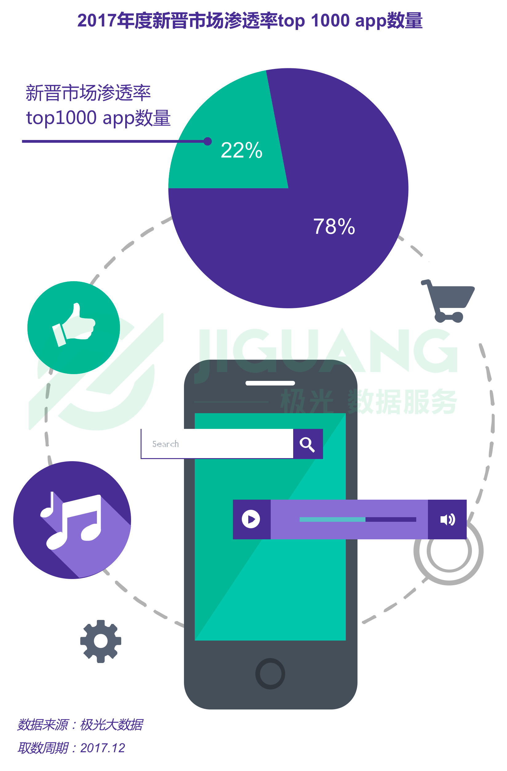 - 2017年度市场渗透率top1000榜单中有78%是去年的老面孔