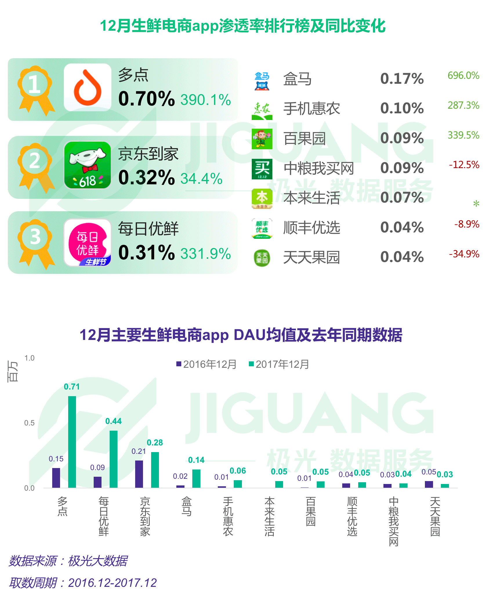 - 与去年同期相比,多点和每日优鲜的市场渗透率和DAU均值增幅都非常显著