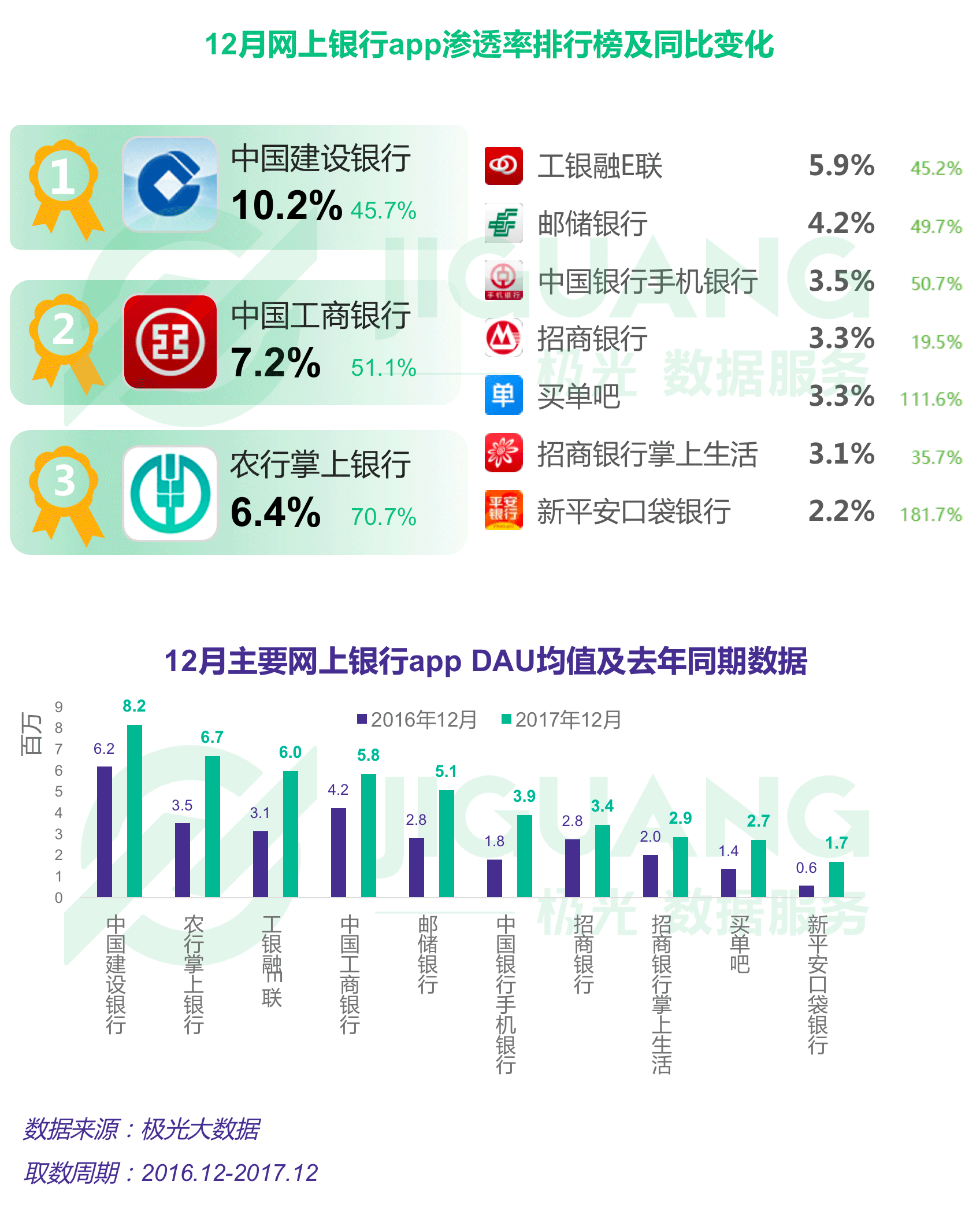 - 中国建设银行app的12月DAU均值超过820万人,农行掌上银行app和工银融E联则都超过了600万人