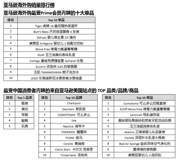 ·热销单品大变样:亚马逊海外购最受Prime会员青睐的十大单品中,排名前8位的商品均来自亚马逊美国,后两位则来自亚马逊日本。而与去年相比,TOP10中的9样商品为新近上榜单品。