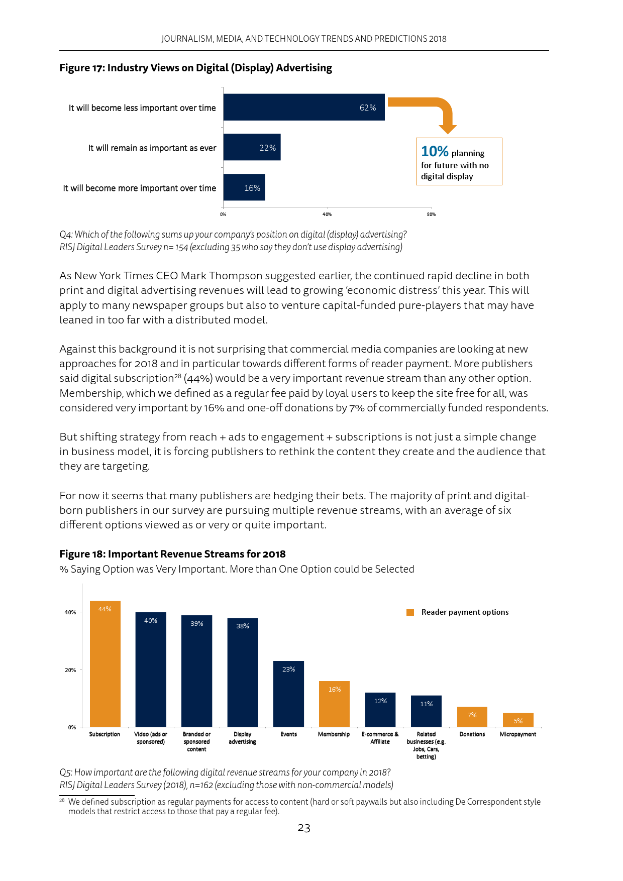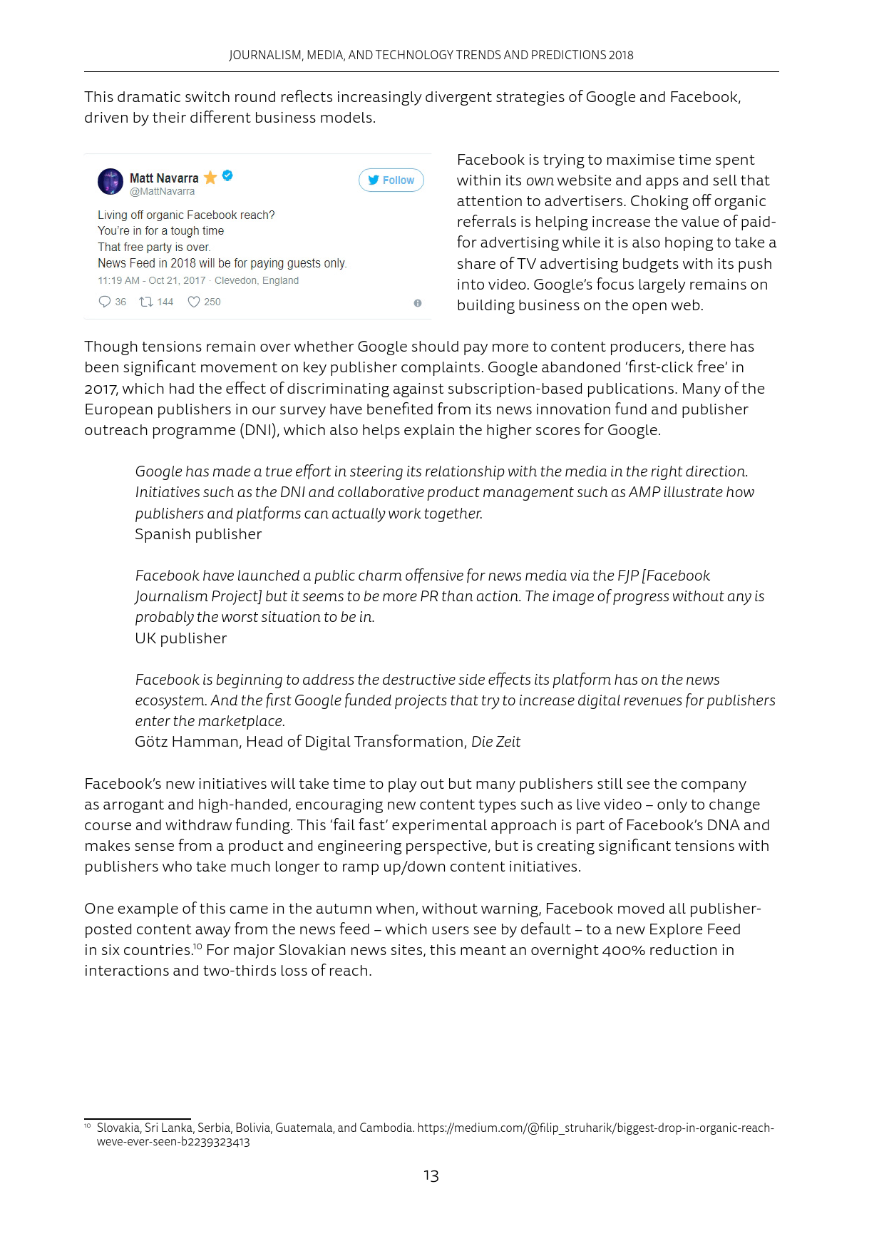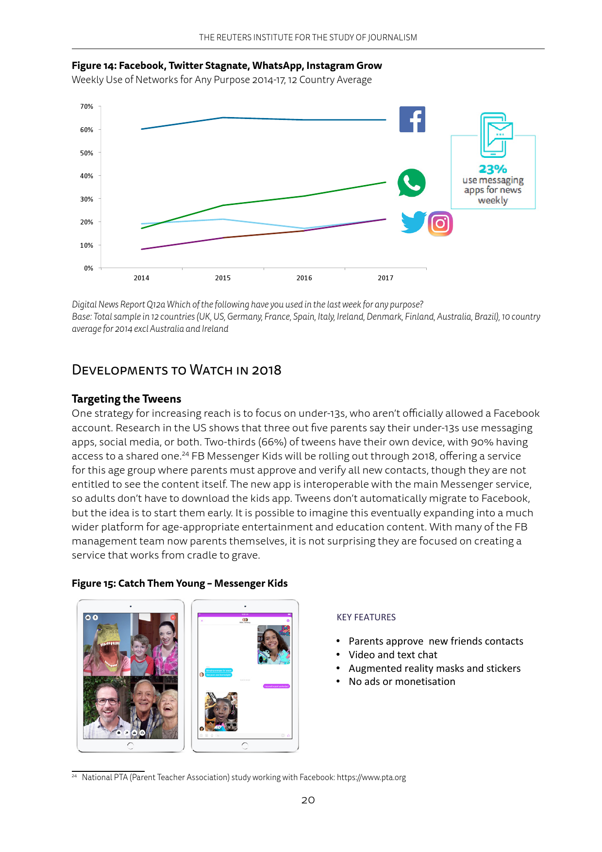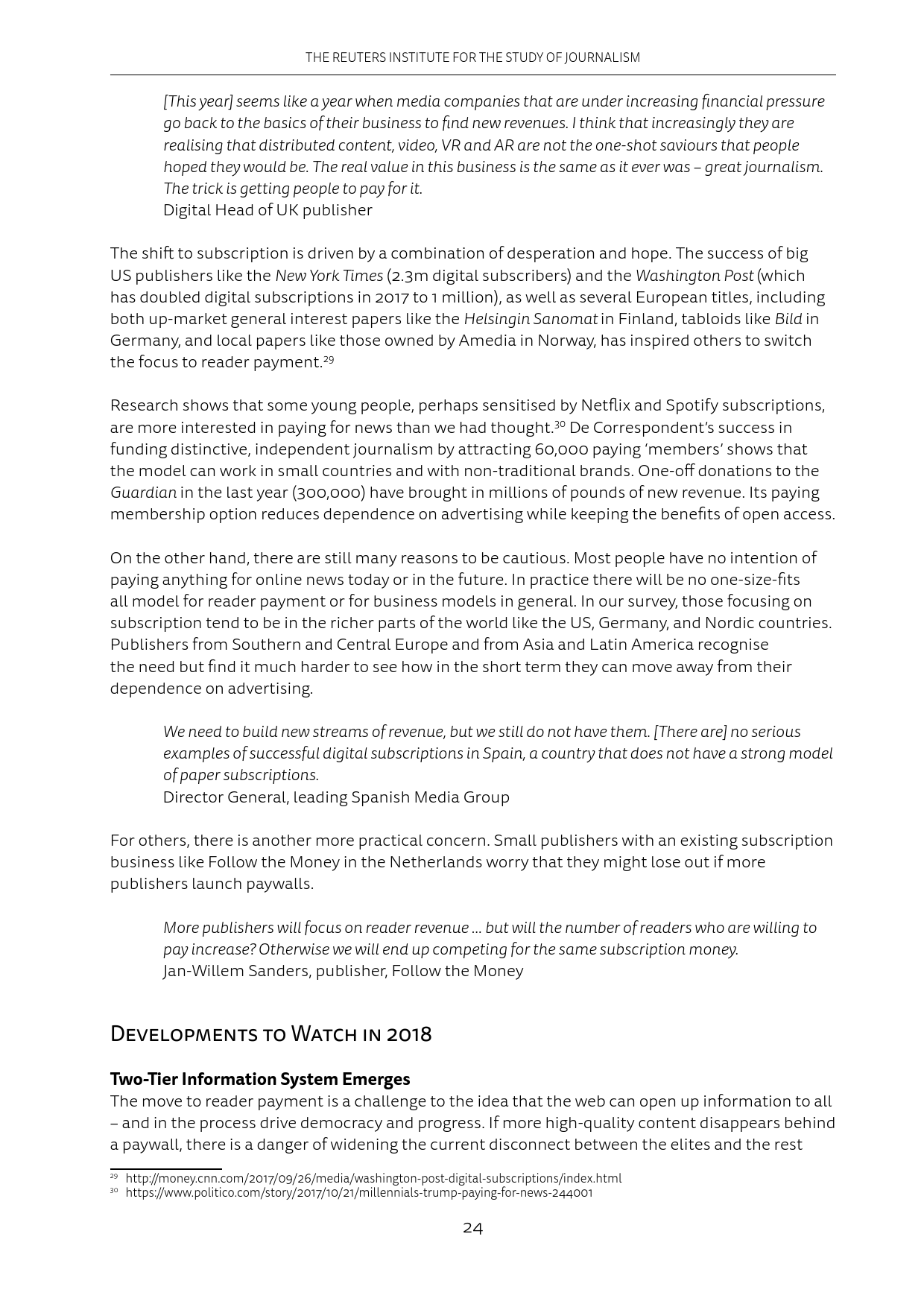 手机应用给用户推送的信息越来越多,这让很多人删除了推送消息过于频繁的应用程序。在新闻界,像Apple News和Google News这样的新闻聚合APP也发送了更多的消息提示。然而Apple News发送的消息提示里,只有约25%是重要新闻。2018年媒体会采取行动,在减少重复推送的同时,提升推送质量。此外,平台会增加过滤推送的功能。