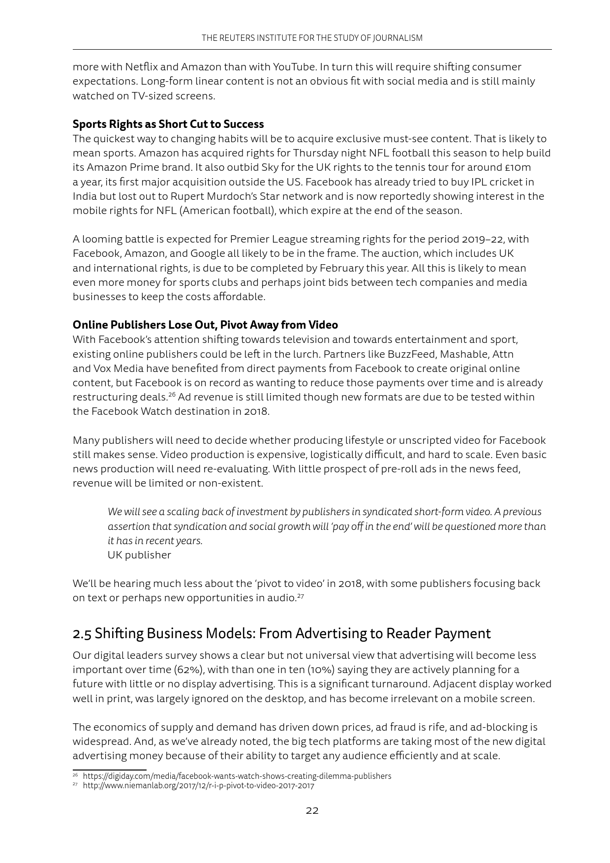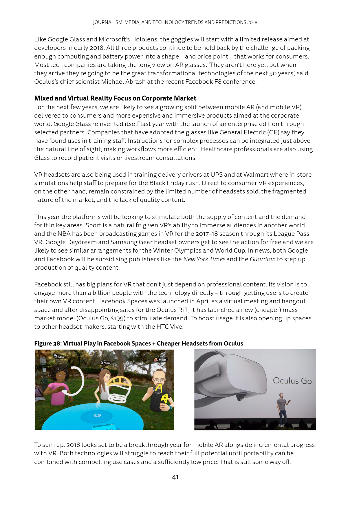 今年平台会刺激关键领域内容的供求。各厂商都已经盯上了体育内容。新闻方面,Google和Facebook会帮助《纽约时报》等媒体开发拥有高质量内容的产品。