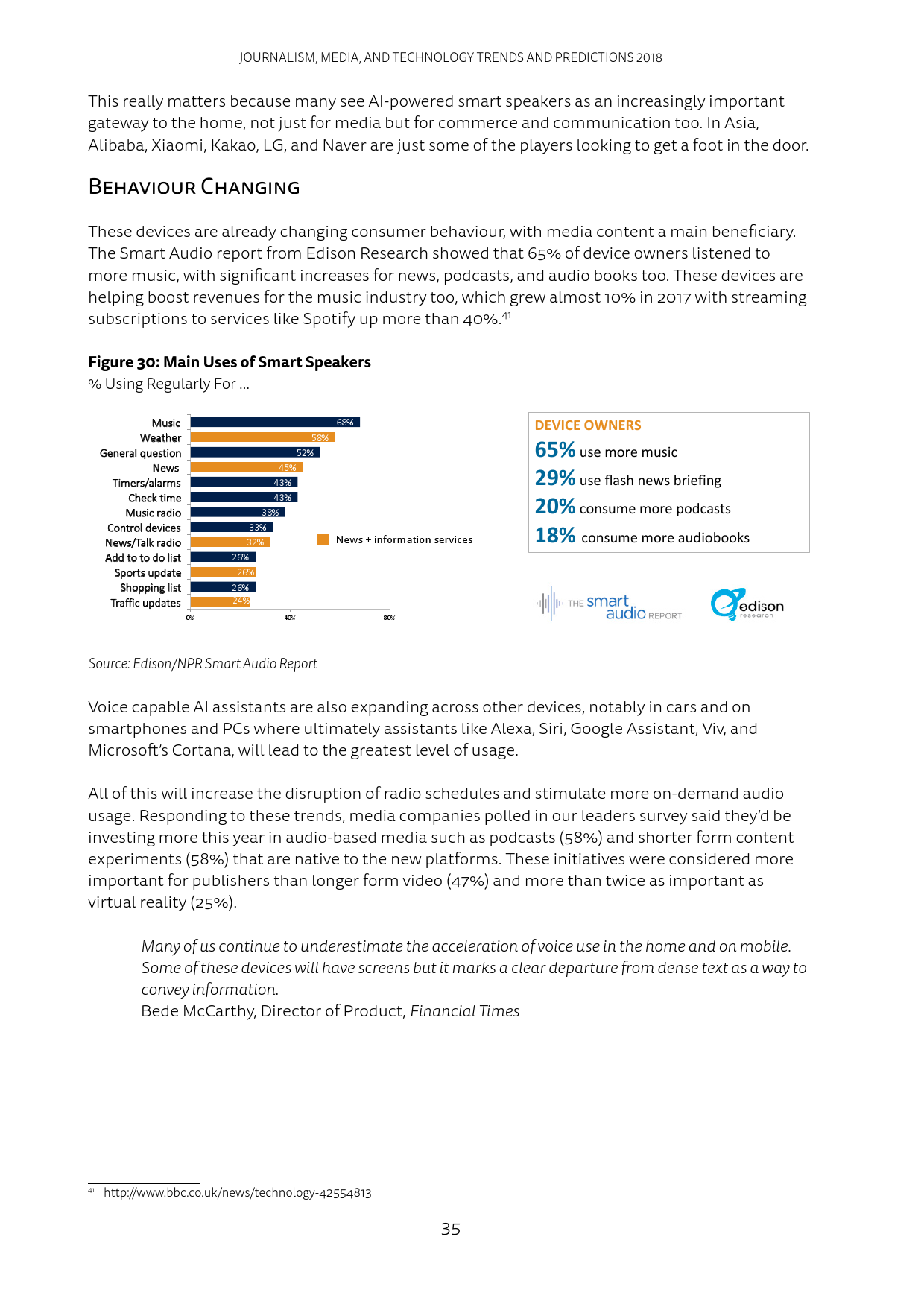 智能扬声器的发展会影响电台节目安排并催生更多音频点播。面对这一趋势,媒体公司将在2018年增加对音频媒体和新平台上短内容的投资。