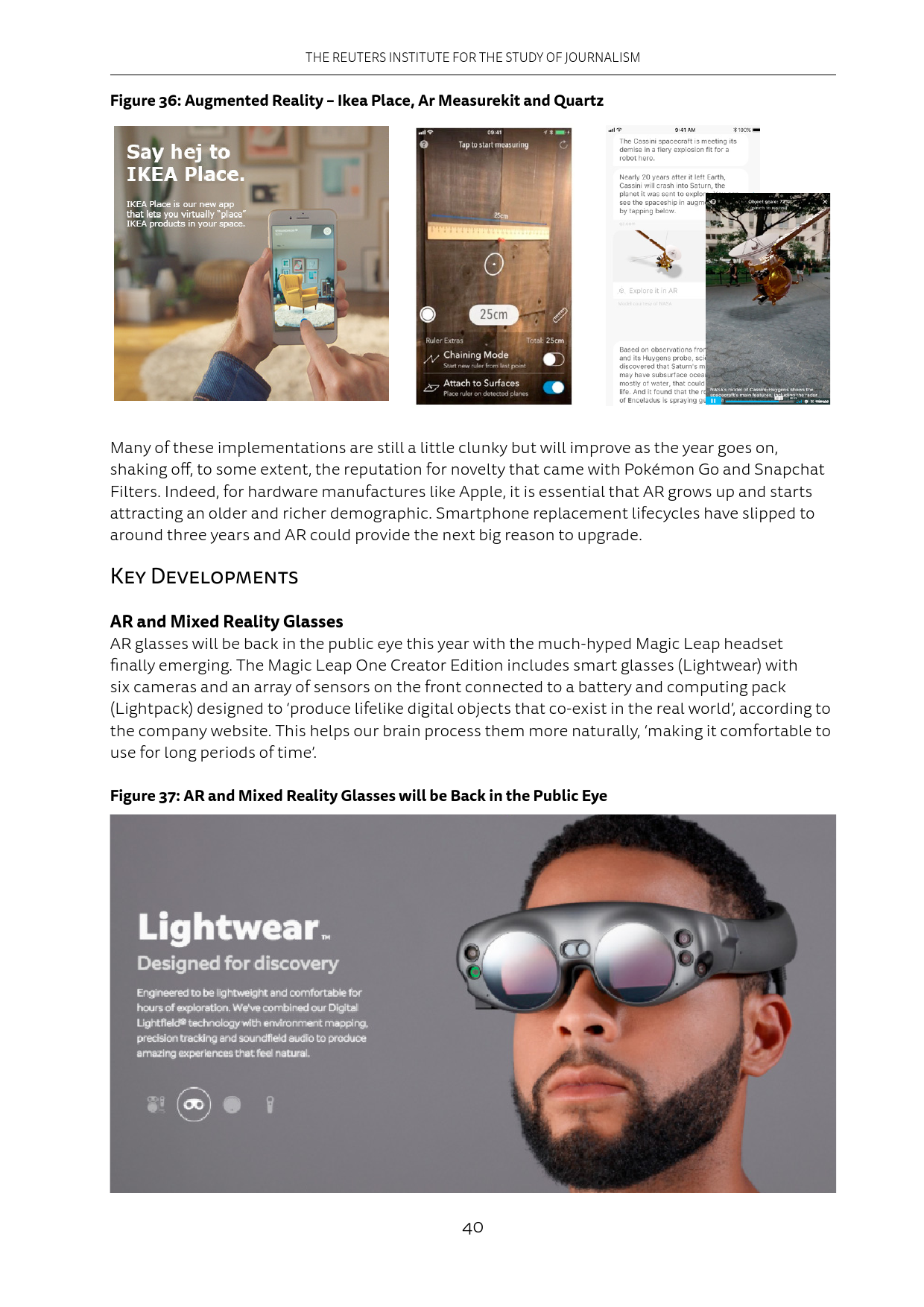 第三方应用方面,宜家的应用IKEA Place能够让用户通过AR预览一款家具摆放在家中的样子。还有应用可以测量距离(如Ar Measurekit )。Quartz则将AR元素融入新闻报道。