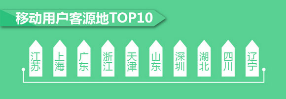 过去一年,江苏、上海、广东、浙江、天津、山东、深圳、湖北、四川、辽宁等省市是途牛旅游App用户主要分布地。近年来,途牛在基本完成国内一、二线城市全覆盖的基础上,不断向三、四线城市渗透,目前全国三、四线城市使用途牛旅游App进行产品预订的用户占比已近30%。