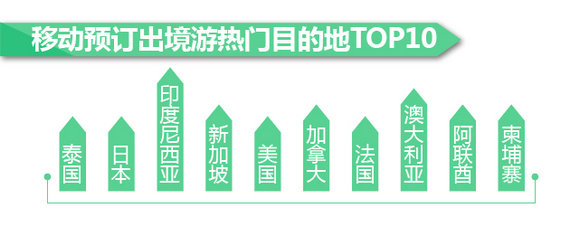 途牛旅游网监测数据显示,过去一年,上海、珠海、杭州、北京、嘉兴、无锡、天津、深圳、南京、成都等方向是最受移动端用户欢迎的十大周边游目的地。三亚、广州、丽江、杭州、厦门、桂林、成都、昆明、西安、大理等是最受移动端用户青睐的十大国内游目的地。从出境方向来看,泰国、日本、印度尼西亚、新加坡、美国、加拿大、法国、澳大利亚、阿联酋、柬埔寨等是移动端预订最热门的十大出境游目的地。