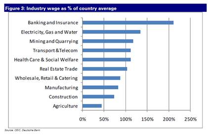 总结:中国工资上涨是一个局部现象,并非整体。低端工资、农民工工资、制造业工资涨得最快。这三者相互重叠,本质相通,都意味着中国的廉价劳动力正在消失。