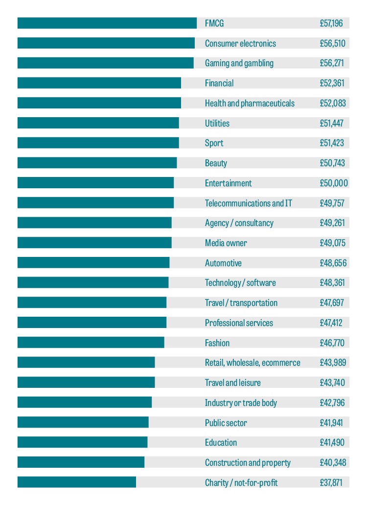 根据“营销周刊(Marketing Week)”的年度薪资调查,游戏和博彩营销人员是营销业薪酬最高的三大垂直行业,平均薪酬56271英镑,仅次于FMCG(57196英镑)和消费电子(56510英镑)。