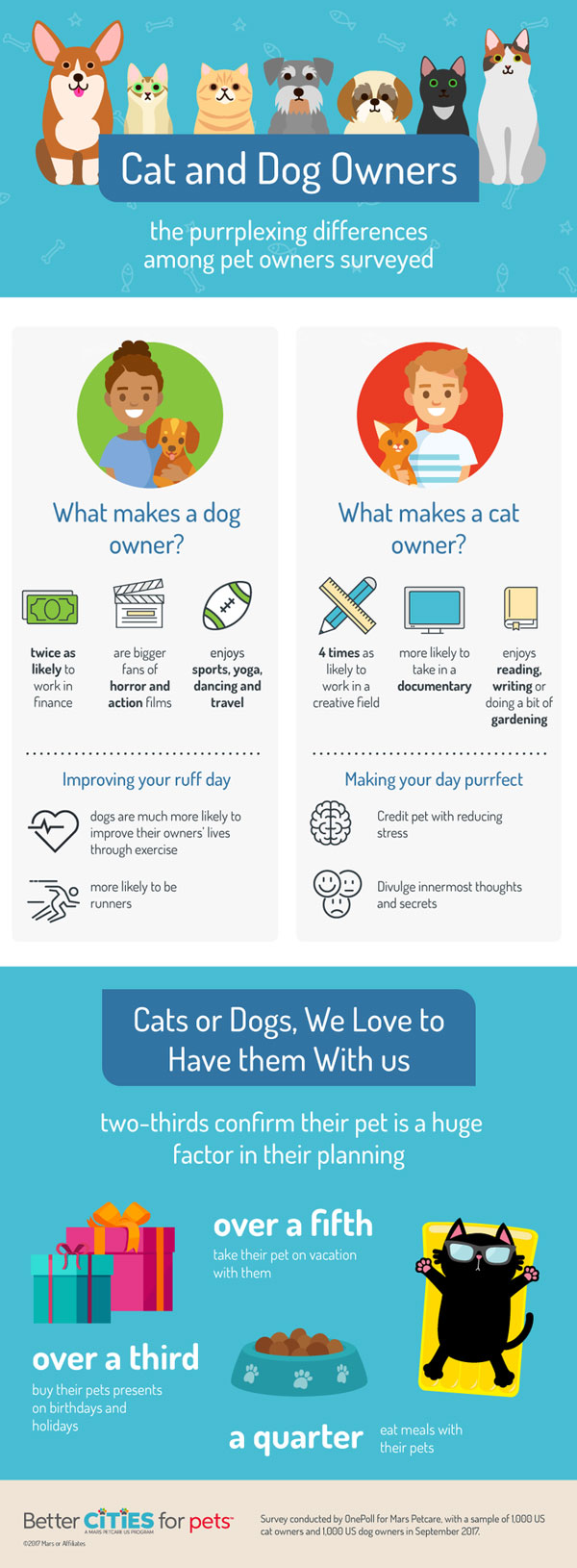 现在,Mars Petcare对1000名狗主人和1000名猫主人的调查为“猫奴”和“狗奴”的不同提供了更确凿的证据。调查结果显示,你偏爱的宠物可能比一场奇怪的相亲或个性测试更能反映你的情况。