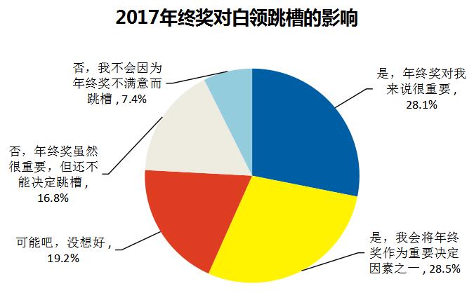 会有因为年终奖而跳槽的白领吗?调查发现,年终奖对白领工作稳定性和忠诚度的影响越来越深,有无年终奖也成为跳槽与否的关键因素。2017年,有56.6%的白领明确表示年终奖将是决定自己是否跳槽的重要因素,比2016年的39%有大幅提升。