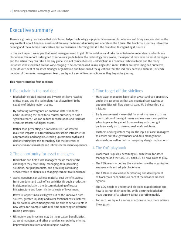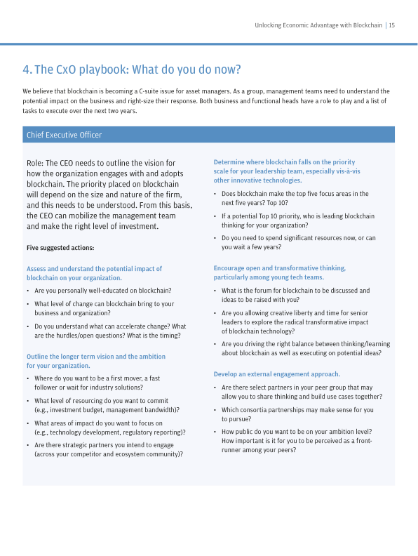 - 区块链正快速成为资产管理机构高层关注的问题,CEO,CTO以及COO都要在其中发挥作用。