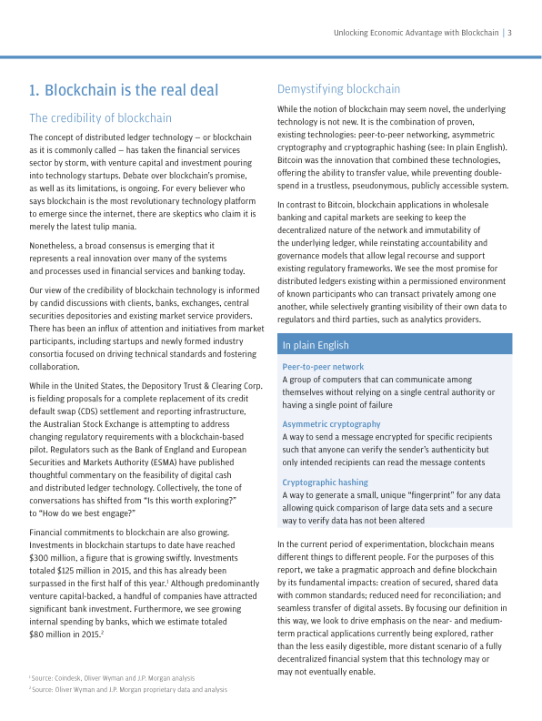 - 本报告并非区块链入门指南,本报告将重点讨论区块链技术对金融市场的潜在影响以及客户的最终体验。