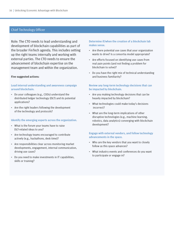 - 对于机构如何应用区块链技术,如何对待区块链技术,CEO应该制定大的蓝图。