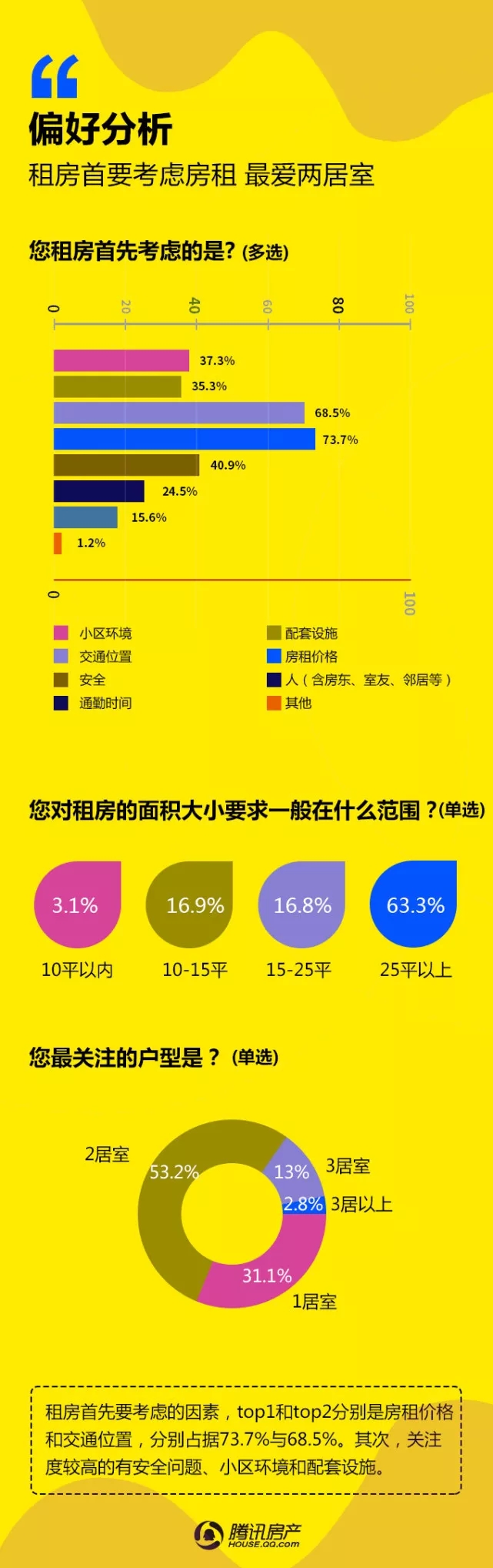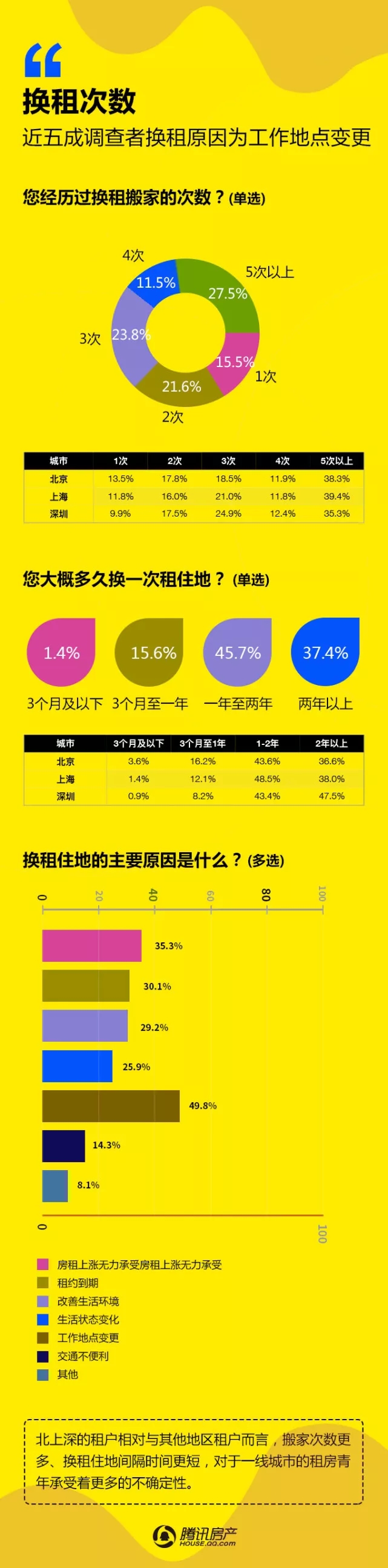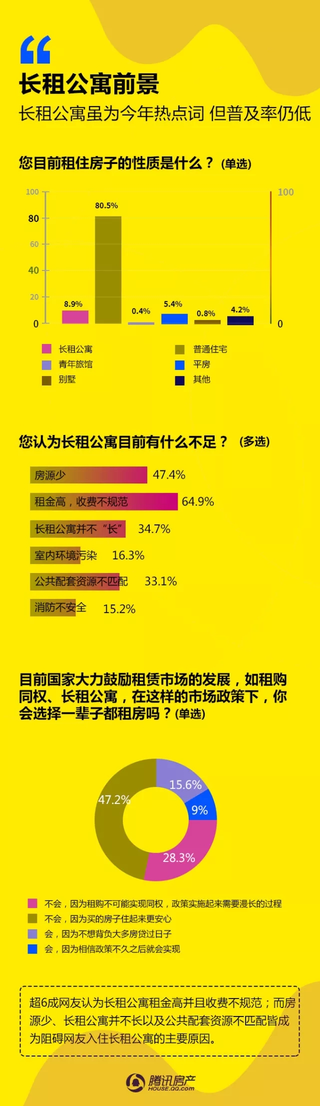 腾讯房产:2017租赁时代白皮书 由腾讯房产发布的《2017租赁时代白皮书》于1月11日新鲜出炉,通过多个城市在线调查得出,有超过42万网友成功填写了调查问卷。 本次调查针对人群画像、租房感受、租房渠道、偏好选择、承受能力、换租情况等多个维度进行分析。调查显示,62.6%的租户对于租房的感受是“无奈”;50.5%的租户租房渠道是通过中介;65.05%的女性租户表示不能接受与异性合租;75.5%的网友拒绝一辈子租房过日子…… 更多阅读:微信生活白皮书:图解我们的数据中国留学生白皮书腾讯娱乐&艾漫数据:2015年腾讯娱乐白皮书–电视篇腾讯娱乐&艾漫数据:2015年腾讯娱乐白皮书–明星篇腾讯娱乐&艾漫数据:2015年腾讯娱乐白皮书–明星篇2019海信互联网电视白皮书北京师范大学:2019中国教师培训白皮书新氧:2019医美行业白皮书青橙:2016-2017中国健身行业白皮书复旦发展研究院:中国女性养老与风险管理白皮书头条指数:2019年艾滋病资讯白皮书科赛:2018数据人才白皮书CiC:2021年智慧城市白皮书小葫芦:2020直播电商白皮书南方电网:2020年数字电网白皮书