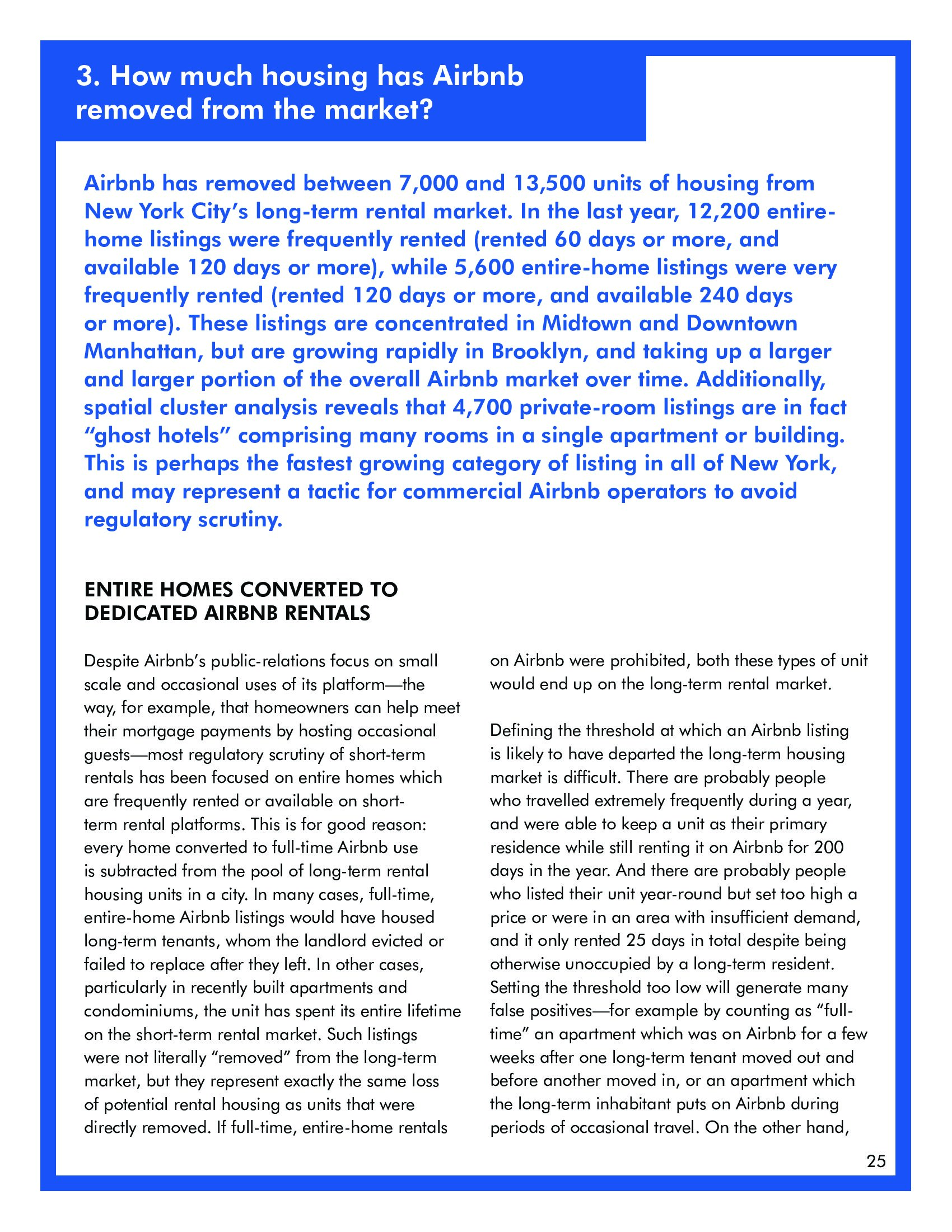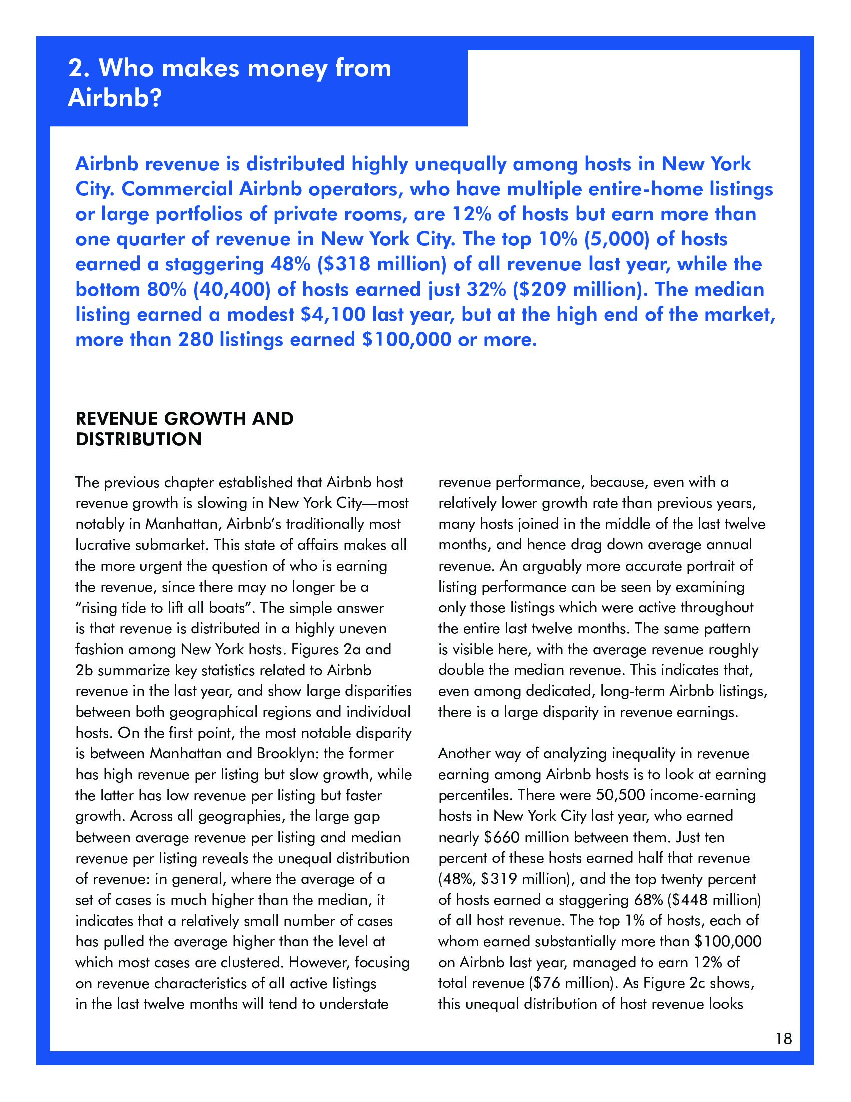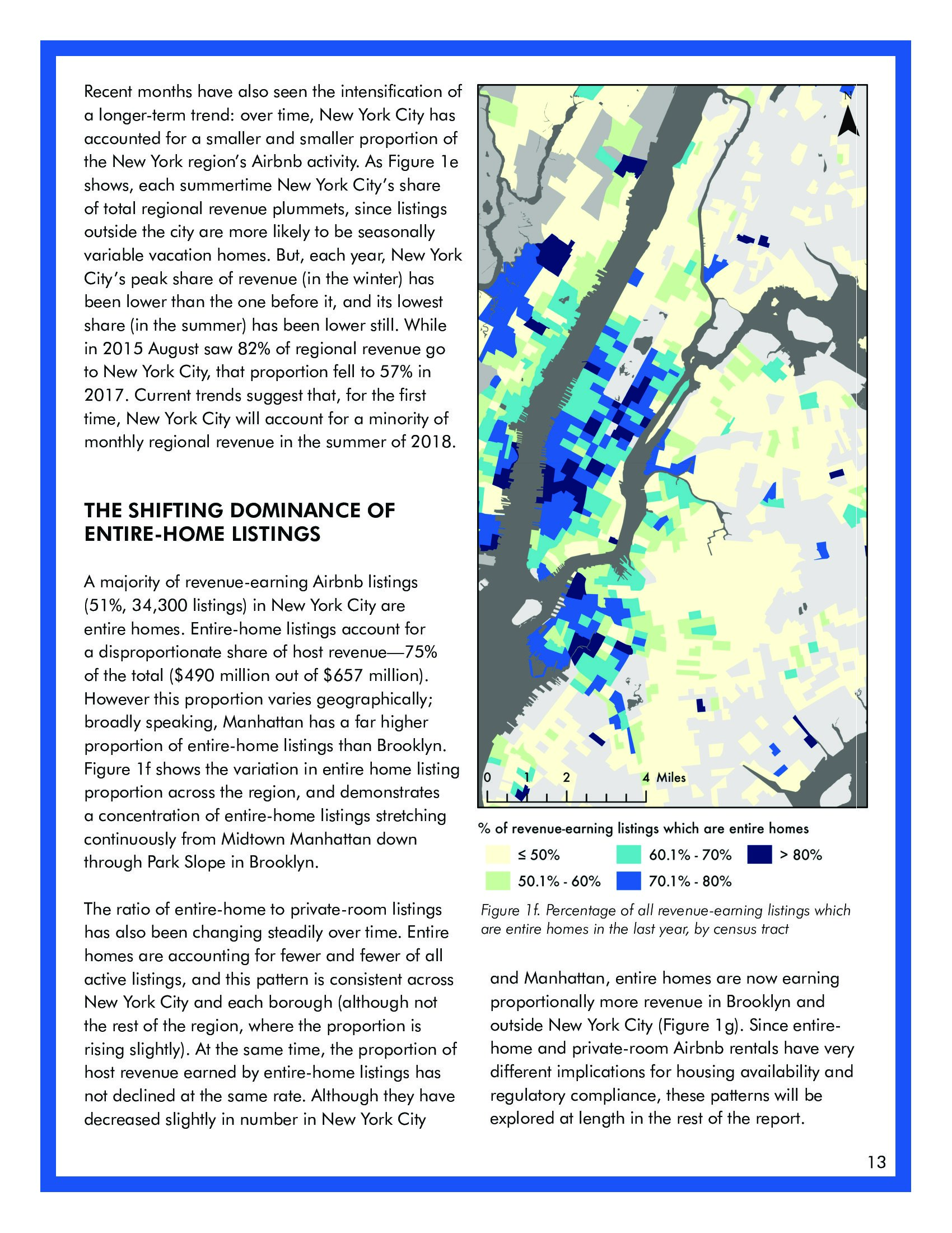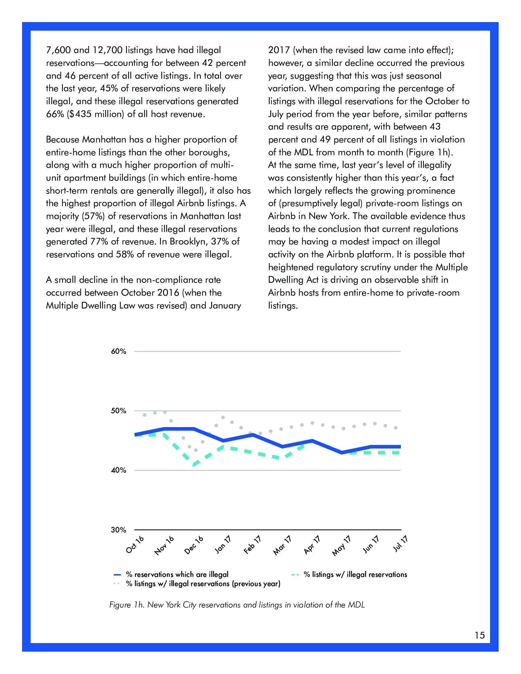 2/3的收入是非法的。整栋或公寓占Airbnb收入的75%,4.9亿美元。根据纽约州法律,87%的整租是非法的,这意味着Airbnb 纽约去年66%的收入和45%的预订是非法的。