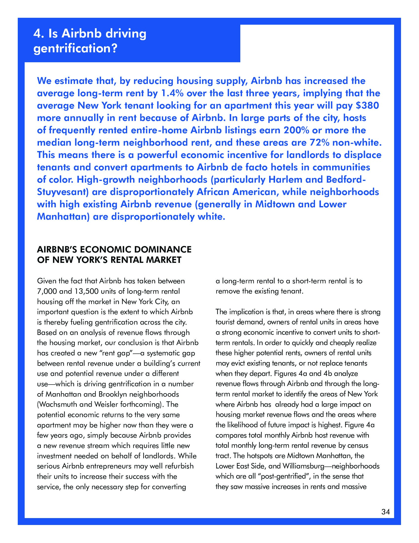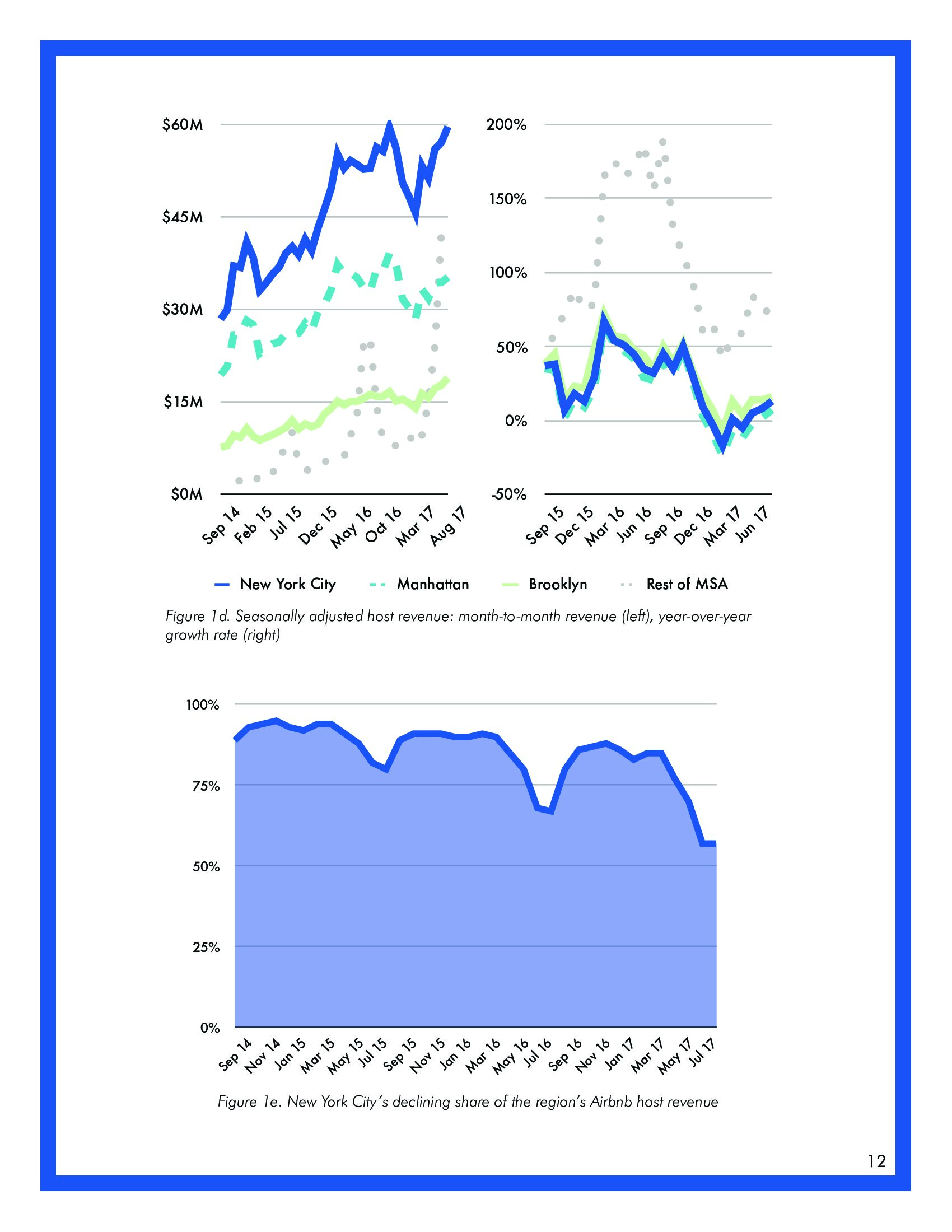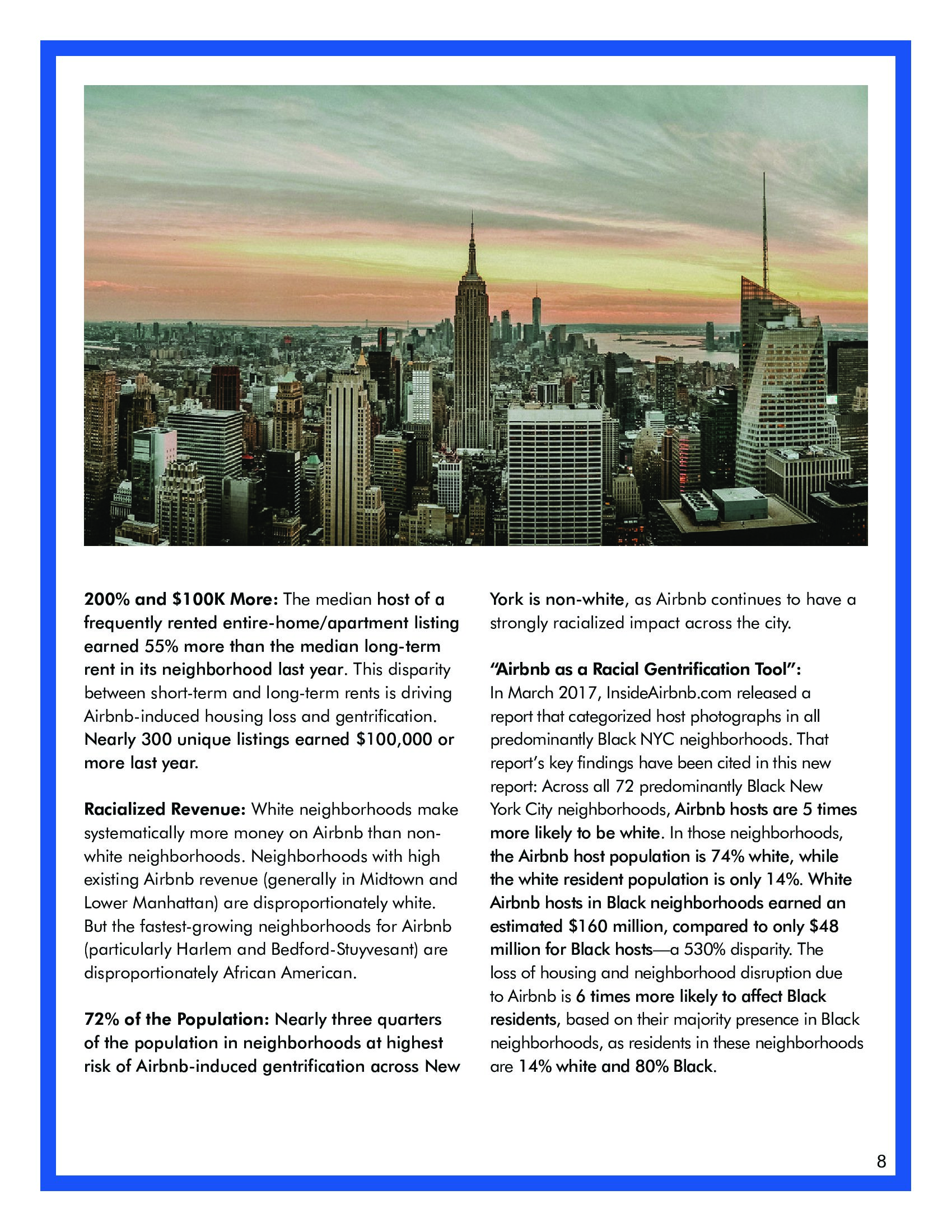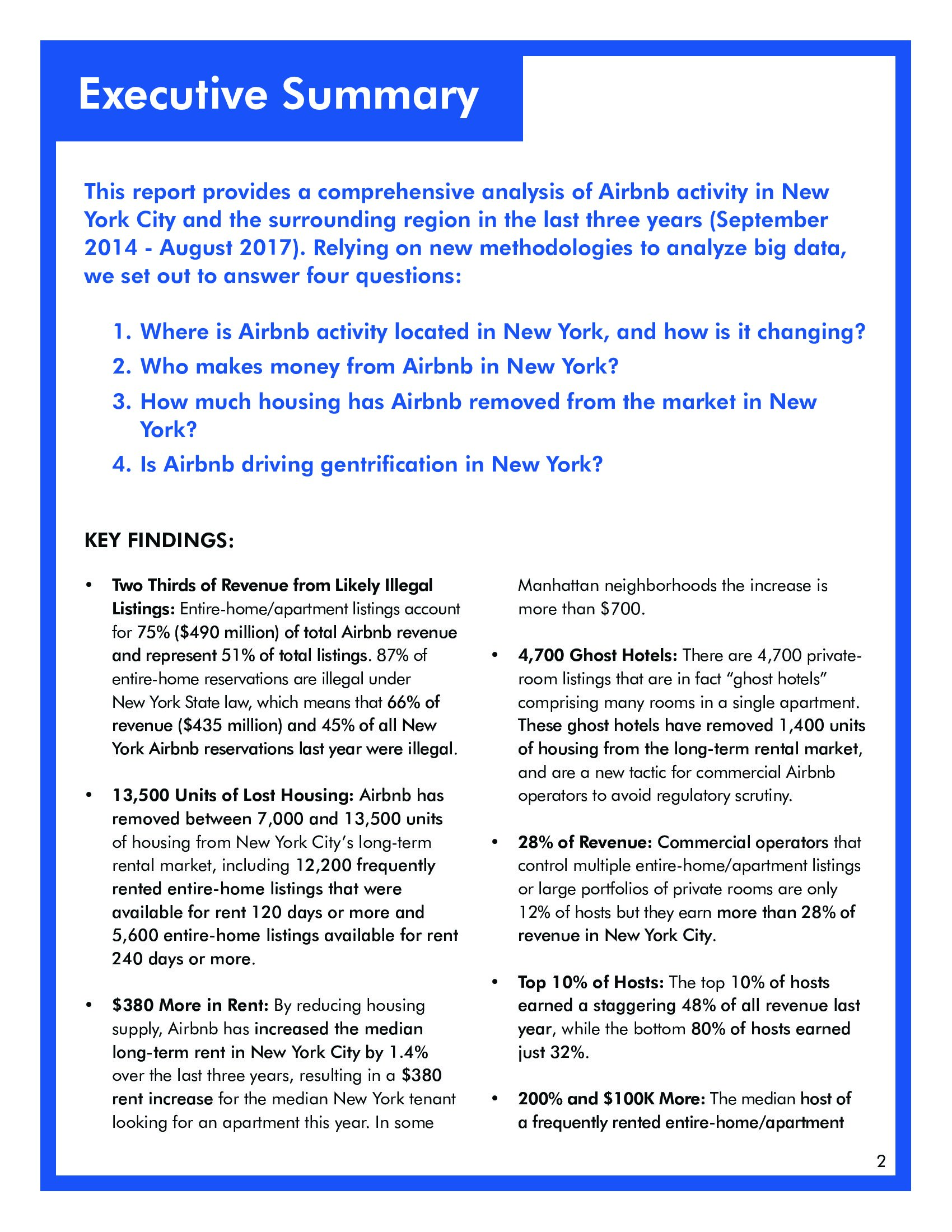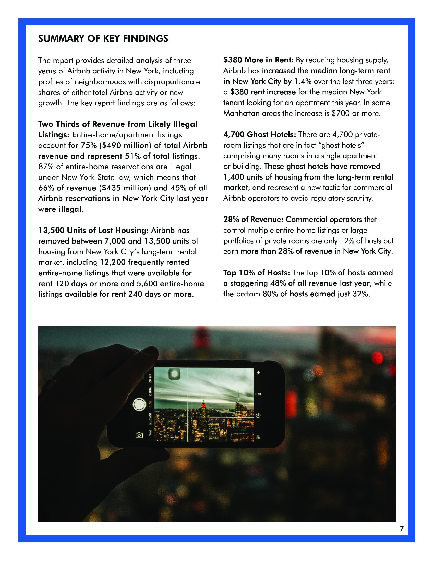 2/3的收入是非法的。整栋或公寓占Airbnb收入的75%,4.9亿美元。根据纽约州法律,87%的整租是非法的,这意味着Airbnb 纽约去年66%的收入和45%的预订是非法的。
