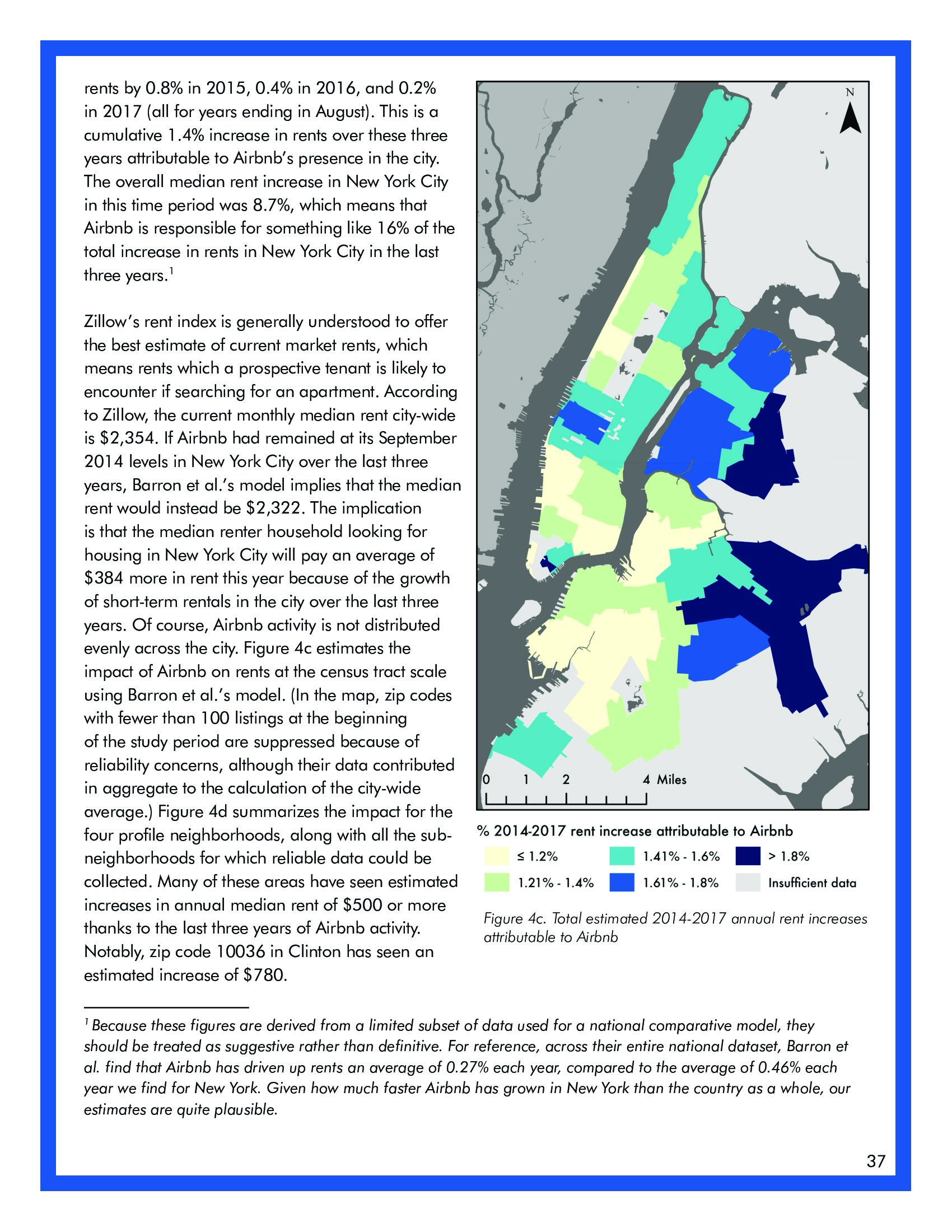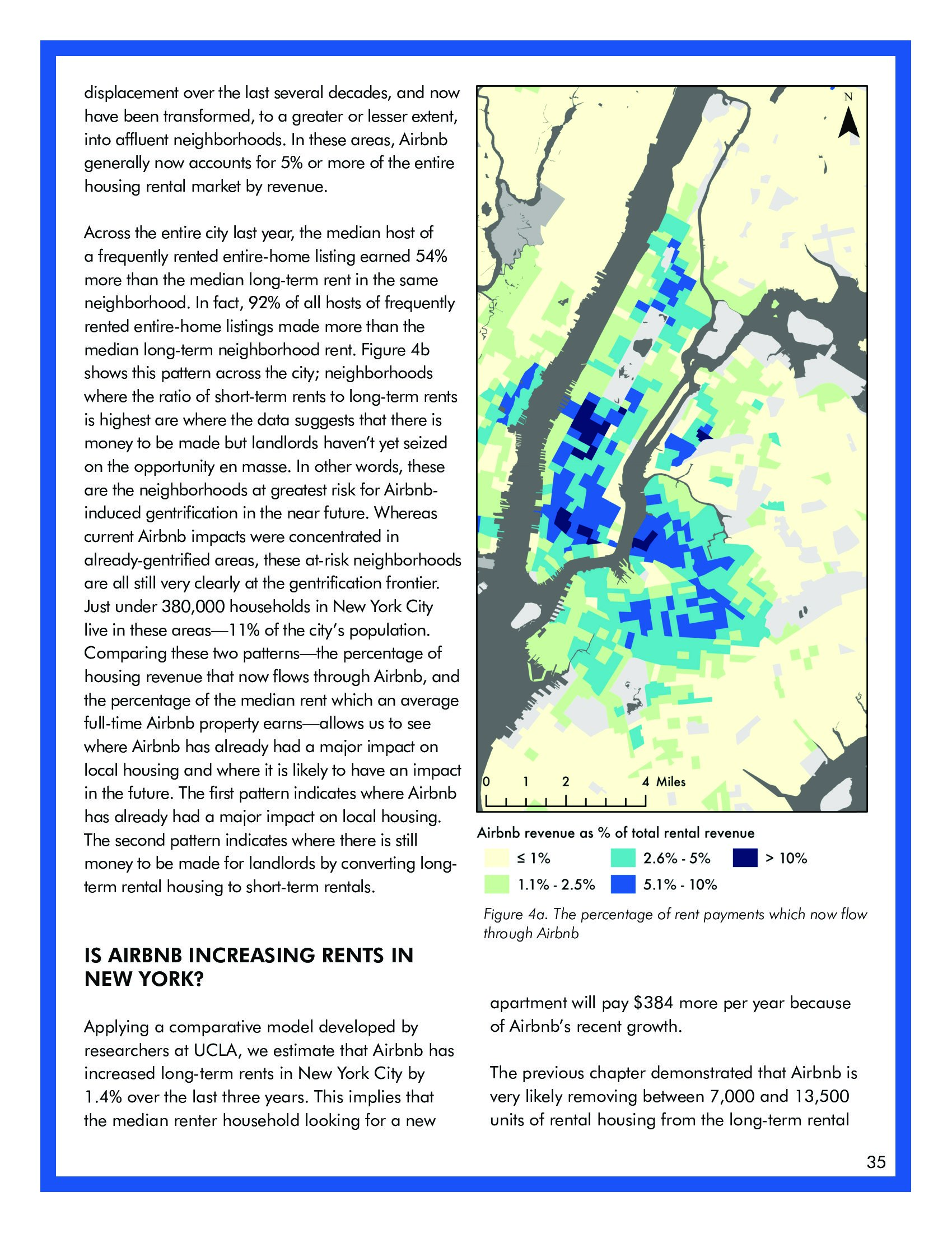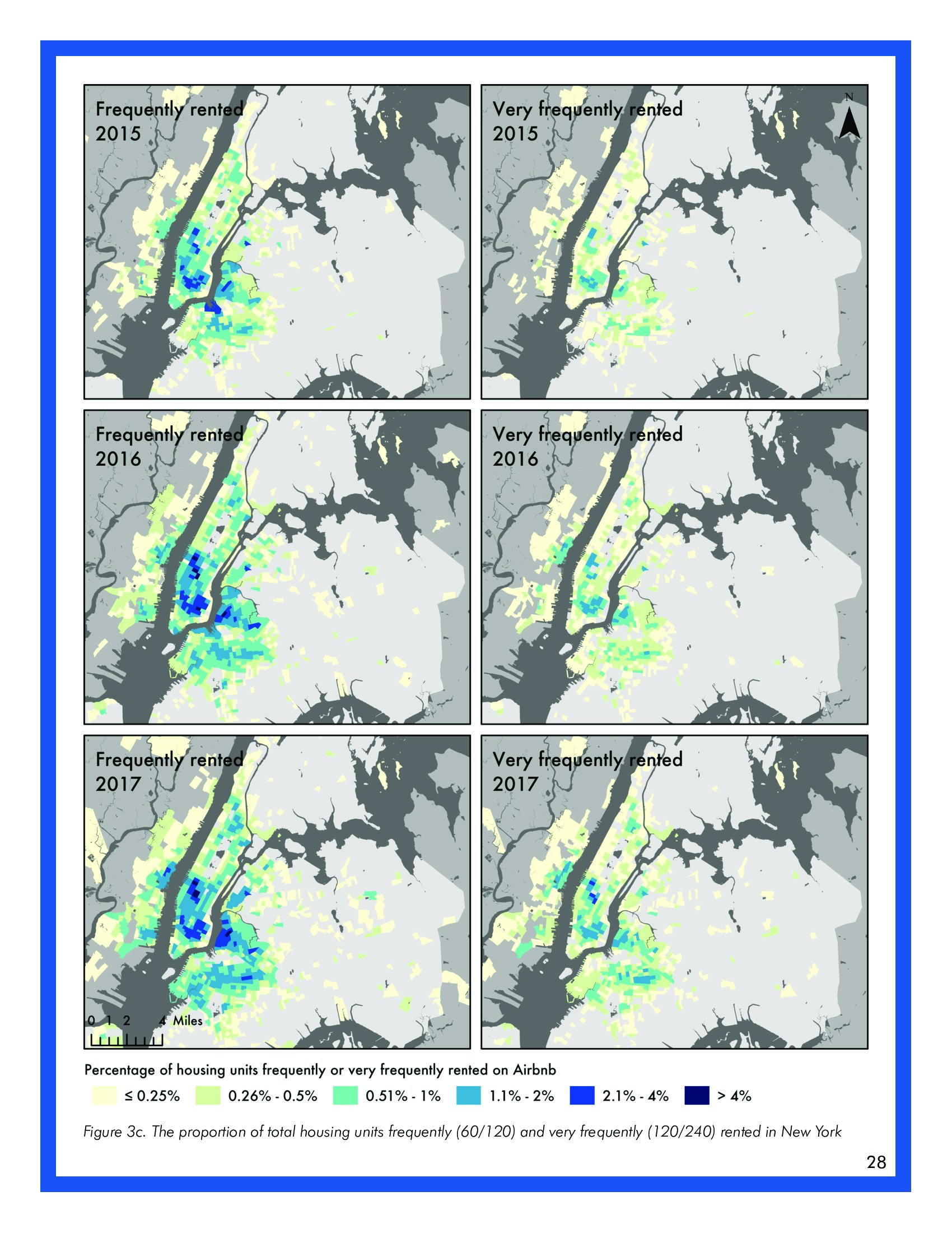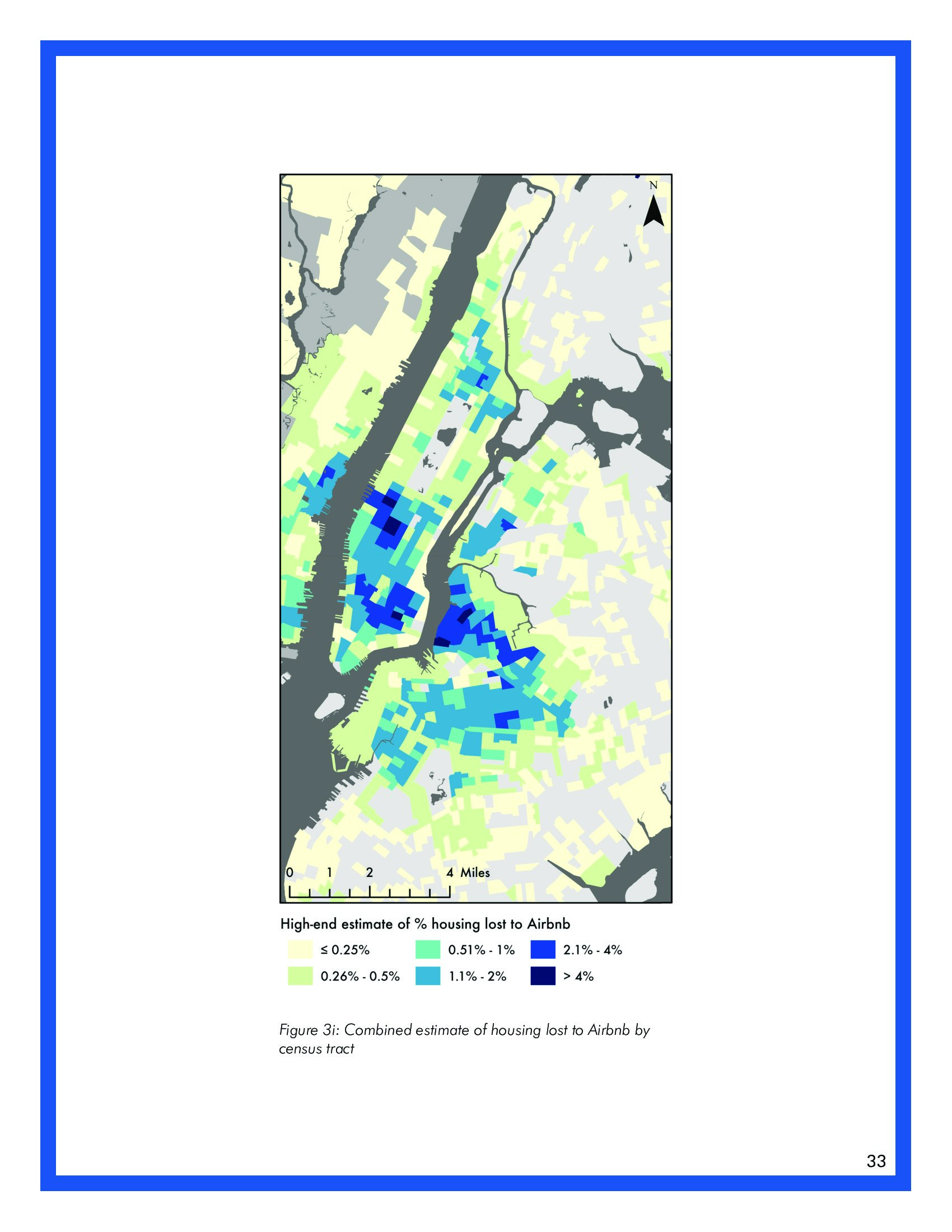 2/3的收入是非法的。整栋或公寓占Airbnb收入的75%,4.9亿美元。根据纽约州法律,87%的整租是非法的,这意味着Airbnb 纽约去年66%的收入和45%的预订是非法的。