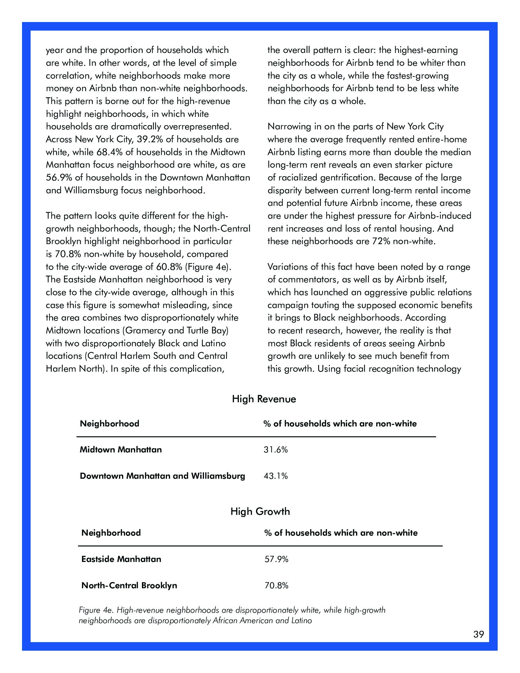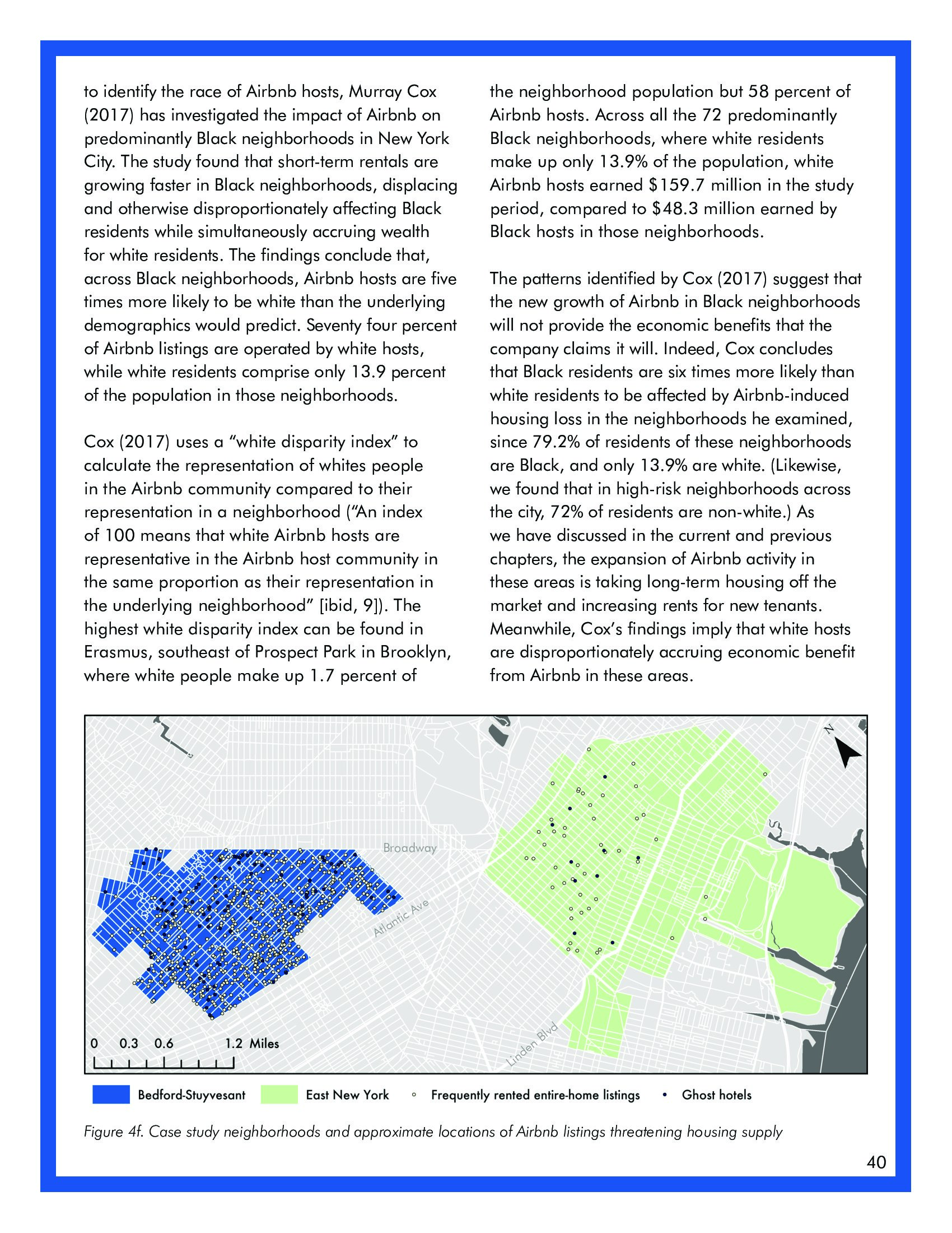 而且Airbnb并没有缩小纽约白人和非白人房东收入差距,白人社区比非白人社区在Airbnb上赚得更多,尽管Airbnb上发展最快的是非裔美国人房东。黑人社区的白人房东在Airbnb上收入1.6亿美元,相比之下,黑人房东仅收入4800万美元,相差530%。