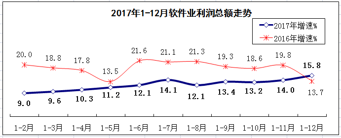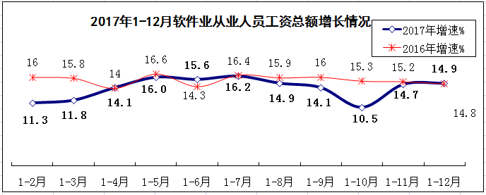 软件业务收入加快增长。2017年,全国软件和信息技术服务业完成软件业务收入5.5万亿元,比上年增长13.9%,增速同比提高0.8个百分点。从全年增长情况看,走势基本平稳。