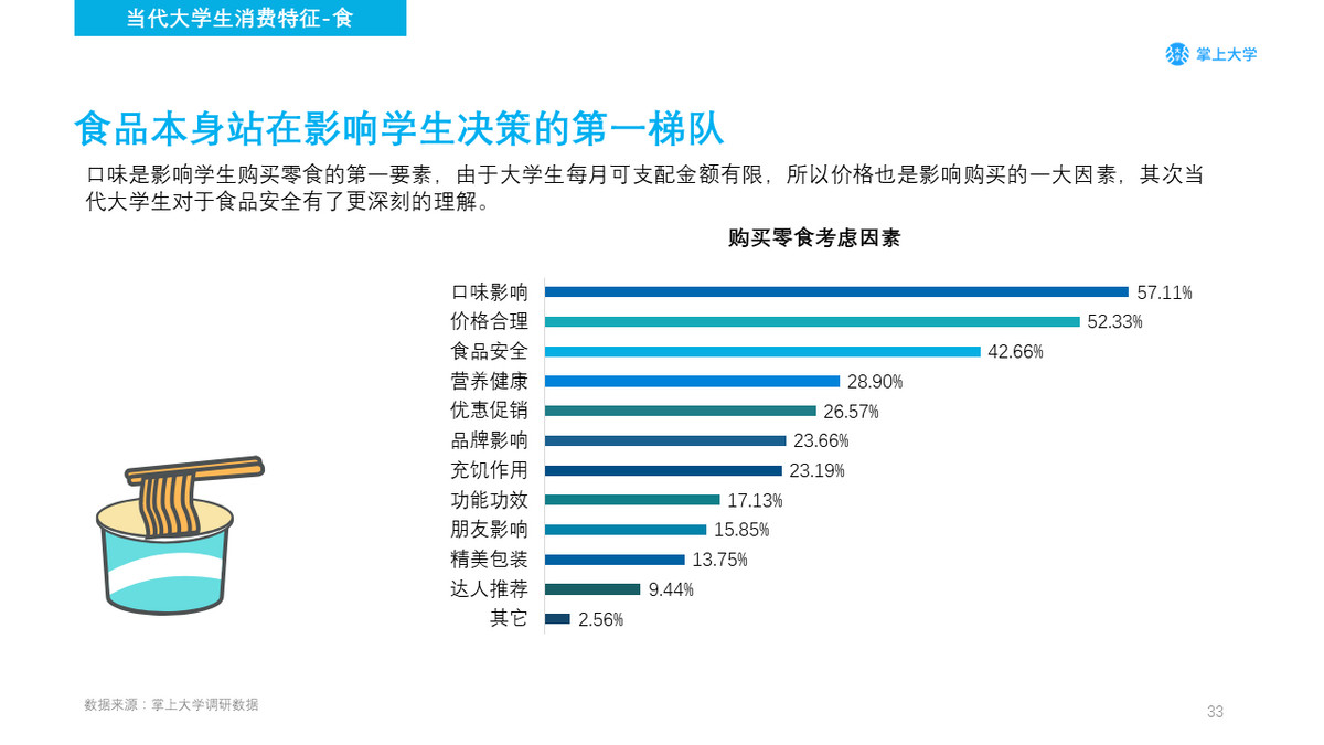 我们对于这些因素进行分类,基本可以分为食品本身、消费者本身和外界因素,从外界影响因素上看,朋友间的口碑传播是在校园这个封闭的环境中最有效的传播渠道。