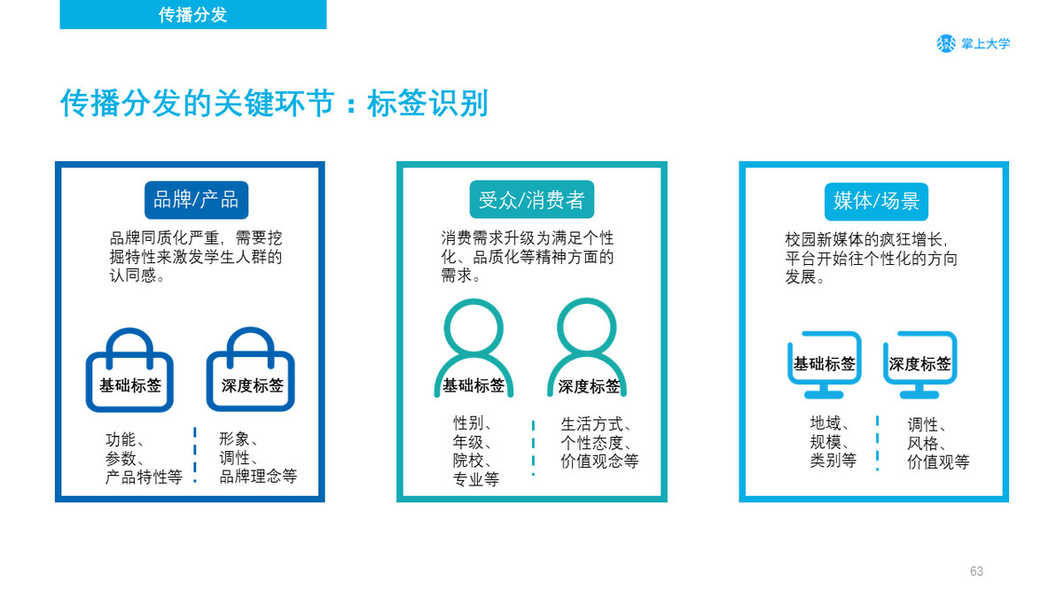 创意与内容在新媒体营销中起着驱动的作用,那么渠道分发则在营销中负责着匹配的作用,目的是为了高效的实现用户与信息、商品的匹配。而在匹配中,最为关键的一个环节就是匹配的机制:标签识别。标签直接影响营销的最终转化,也决定了营销的是否有效。