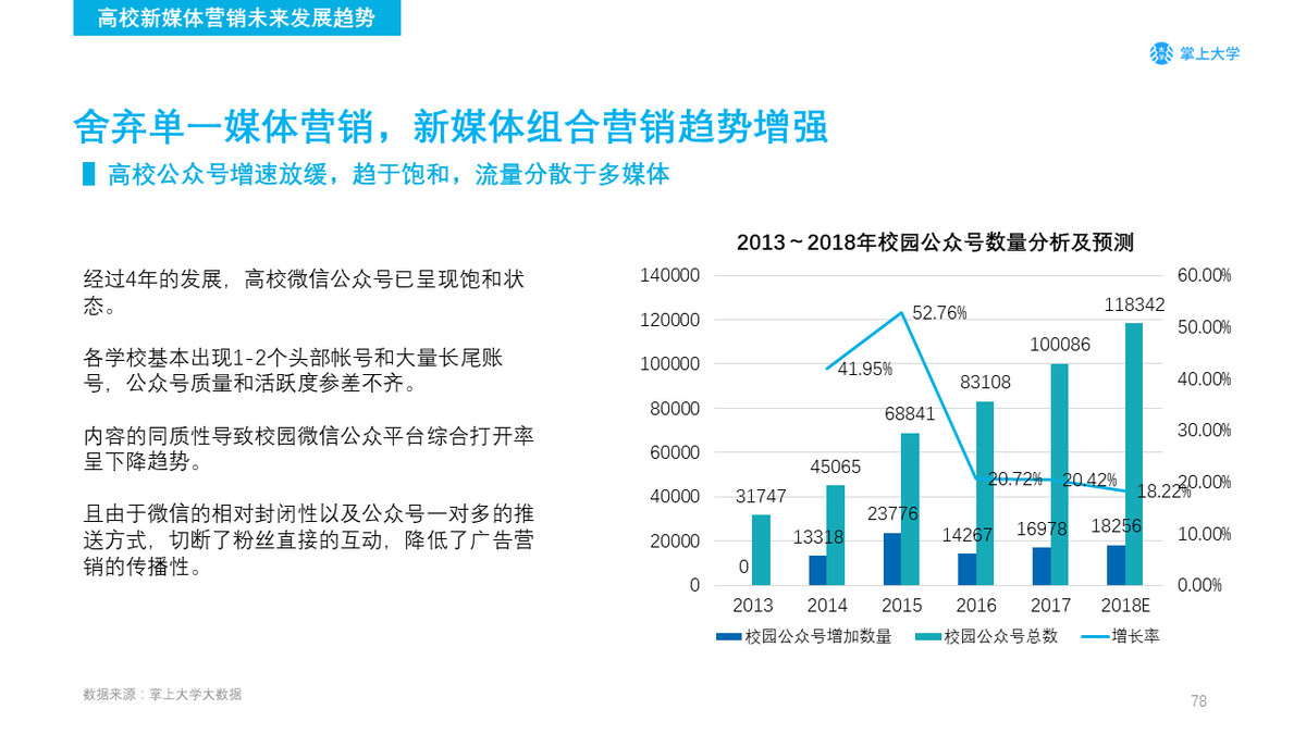 经过4年的发展,高校微信公众号已呈现饱和状态。