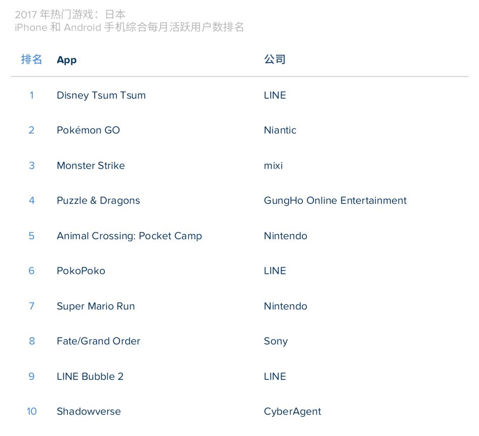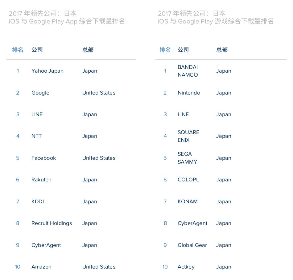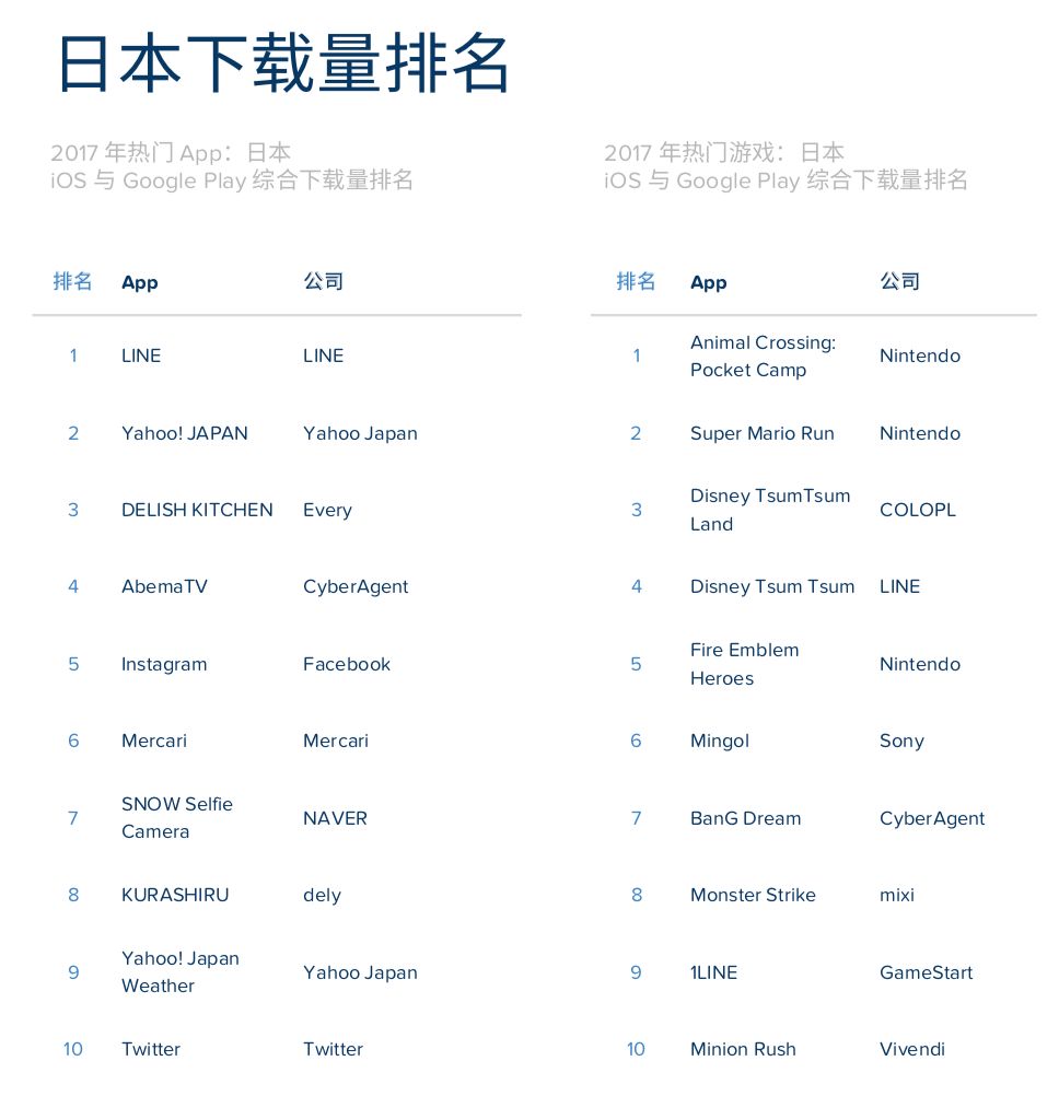 App Annie:2017年度日本及韩国月活跃用户数、下载量及收入排名 更多阅读:App Annie:详解最新日本手游市场趋势App Annie :日本移动游戏市场大有可为App Annie:2013年10月日本移动应用消费额比美国多10%App Annie:2012年12月Google Play美国收入76%都来自游戏 日本占88%App Annie :2017年度全球及中国月活跃用户数、下载量及收入排名App Annie:2017年12月中国App市场解析App Annie:2018年全球热门APP下载量排行榜App Annie:2021年8月中国厂商及移动应用出海收入30强App Annie:2018上半年中国发行商在韩国收入突破 2.5 亿美金 同比增长 53%App Annie:2018上半年中国发行商在日本收入突破 4 亿美金 同比增长 34%。App Annie:春节假期推动中国 iOS 用户支出创下历史新高App Annie:2018 年1月中国App市场解析App Annie:数据显示Facebook统治iOS全球软件下载榜单App Annie:2021 年3月中国厂商及移动应用出海收入 30 强App Annie: 2019年全球热门移动App年终盘点