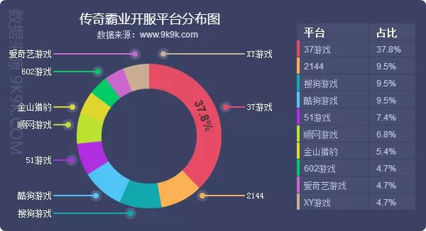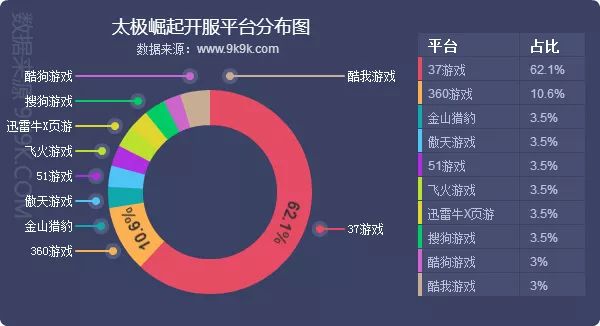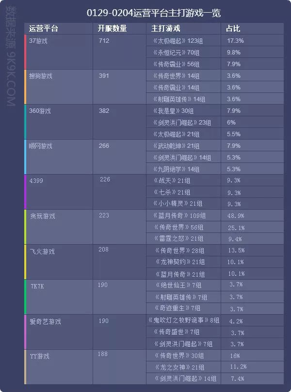 点评:本周《传奇世界》开服总数较上周有所缩减,但在各平台分布占比情况仍保持稳定状态新增占比分布平台7k7k,开服频率达1服/天。
