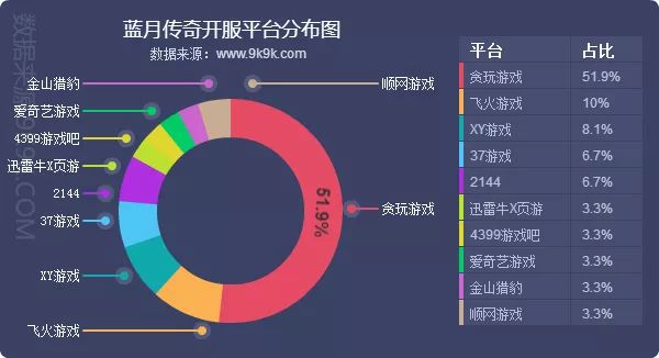 点评:本周《蓝月传奇》开服总数较上周有所增涨,其在贪玩游戏开服占比已超过半,开服频率达15服/天;新增占比分布平台迅雷牛X页游、4399、爱奇艺游戏、金山猎豹、顺网游戏。