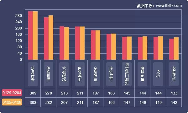 点评:本周《太极崛起》开服总数增涨2.8%,其在飞火游戏等多家一线平台开服频率稳定在1服/天。